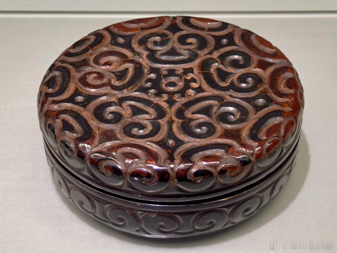 菅原道真的姑母觉寿尼所在寺院(今大阪道明寺)传下来了一些菅原道真的遗物,由于他生前官职较高,用的都是唐代物品,这次展出了镜子、犀角刀和砚台。还有后世供奉给他的宝物,包括图7-8的南宋漆器。
