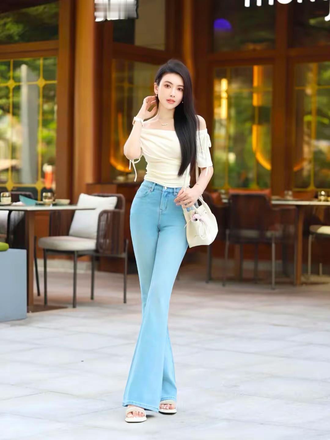 高腰牛仔裤真是搭配神器!春天选高腰直筒牛仔裤,时尚又百搭。像白色高腰直筒,配简单