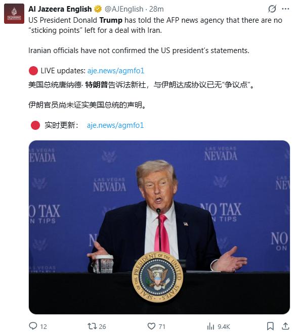 先给一个结论,再补细节,顺便把主动权说成自己手里的。他在采访里强调几个点,“伊朗人想见面”,“大部分要点已经敲定”,“无限期暂停核计划”。听着挺完整,像是合同都写好了,只差签名。