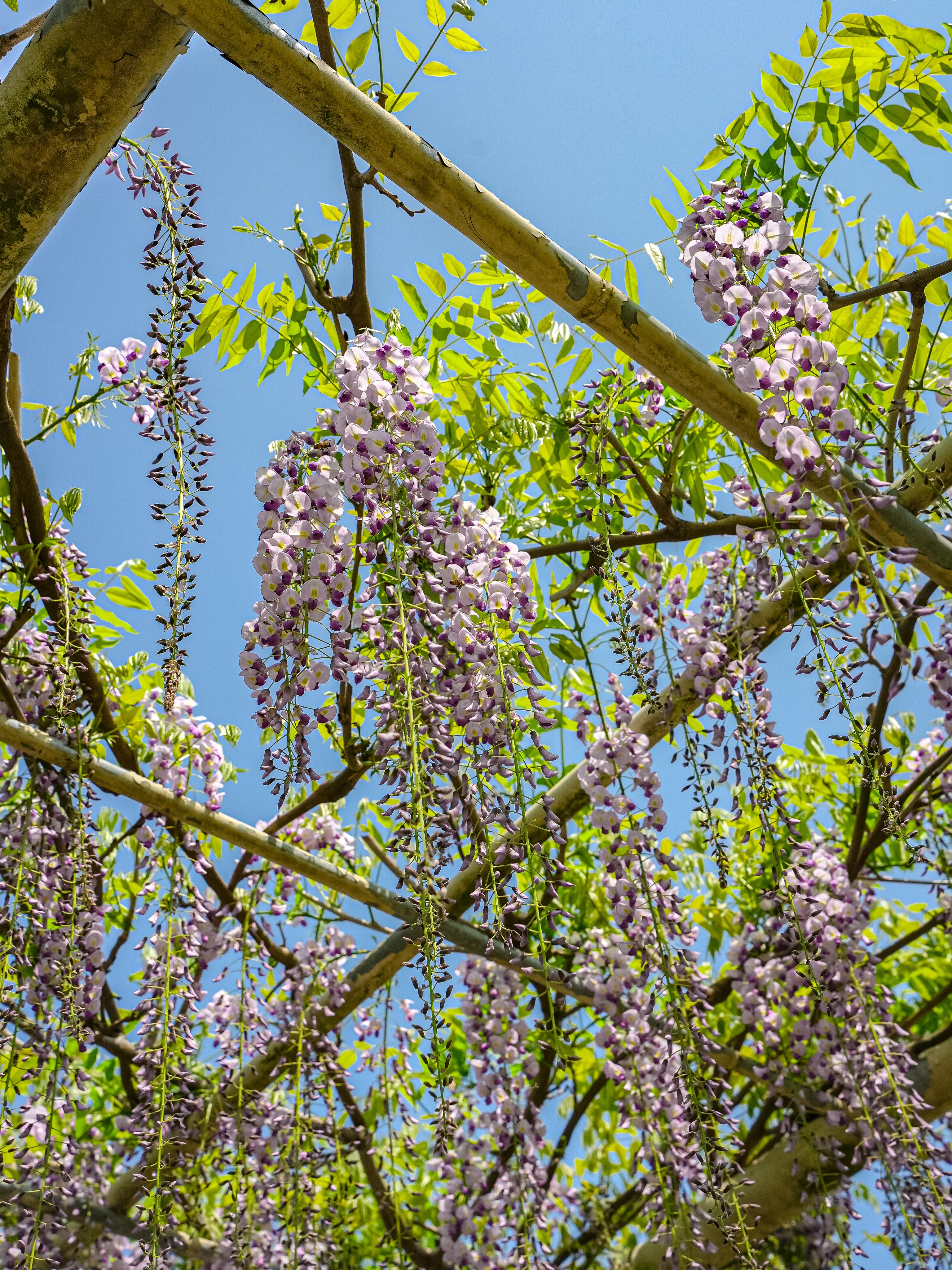 垂挂的紫藤花穗🧡被悄然唤醒