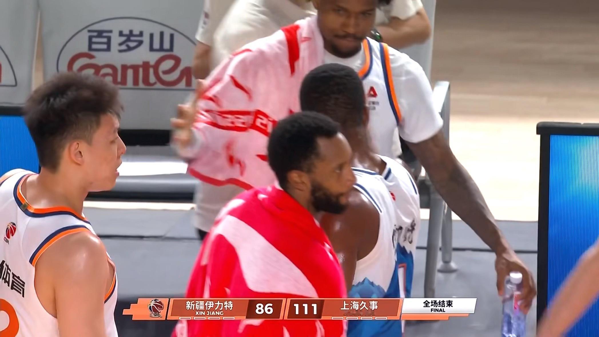 上海队在客场战胜新疆队,取得了21连胜上海久事大鲨鱼