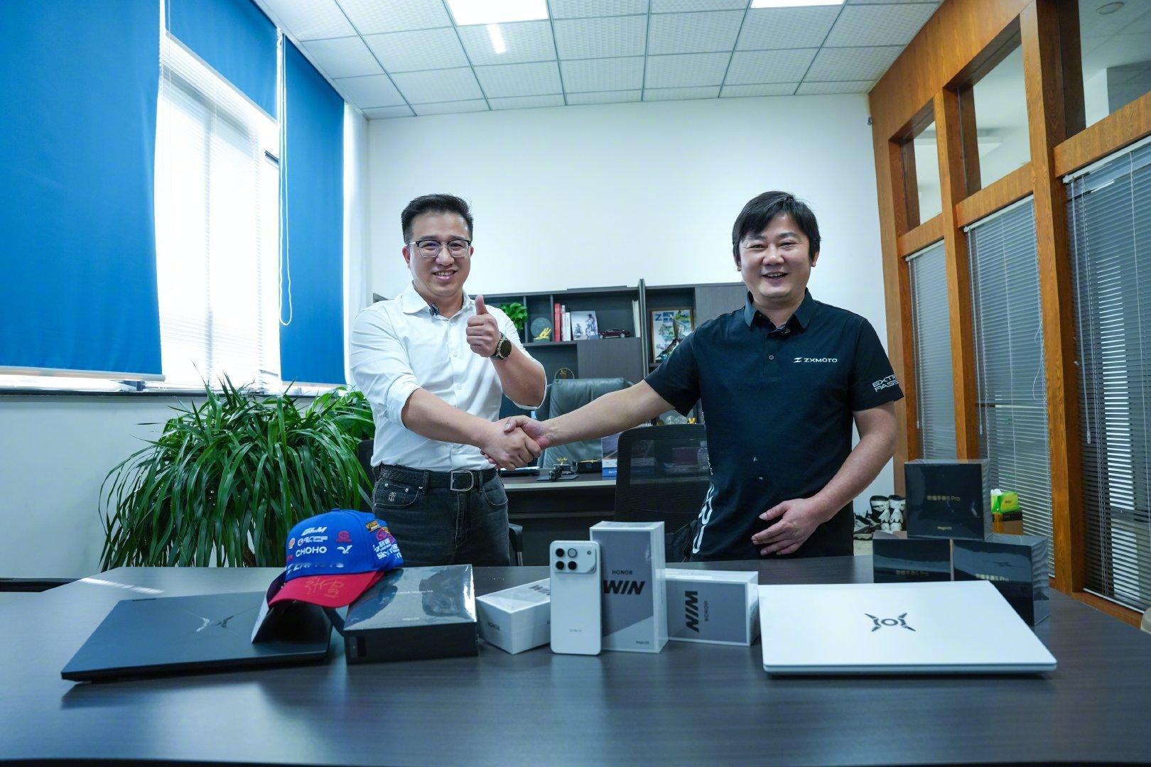 荣耀WIN和张雪机车梦幻联动谁懂啊!荣耀WIN和张雪机车居然联动了。一个稳赢电竞,一个赛道夺冠,全是国货自研硬实力。现在张雪都用上荣耀WIN了,科技+机车的双强组合,这波跨界太对味,必须支持!