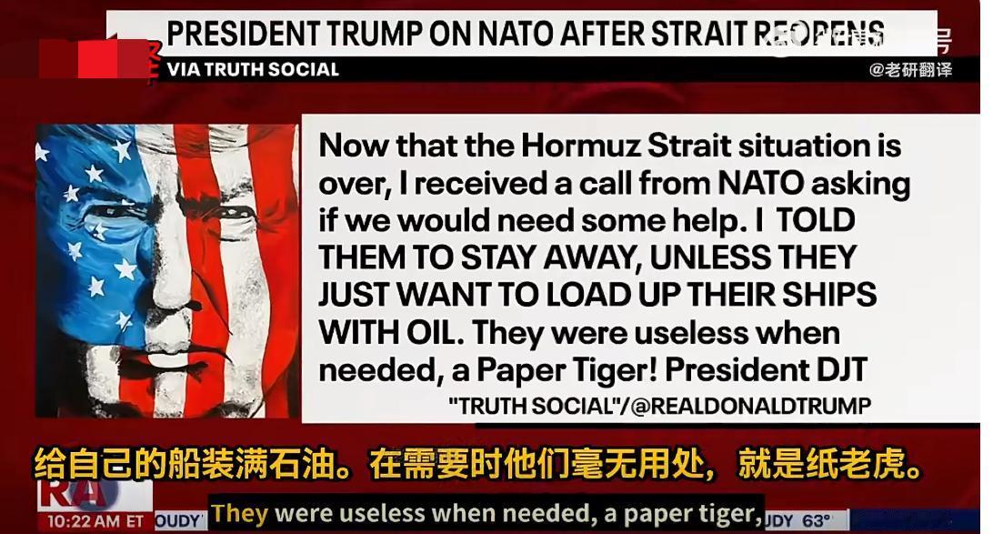 海峡刚恢复通行就翻脸,特朗普既是发泄怒火,也是一种敲打。在特朗普眼里,北约早已是只能利用、不能共患难的摆设,就算“美国爸爸”也不好使!