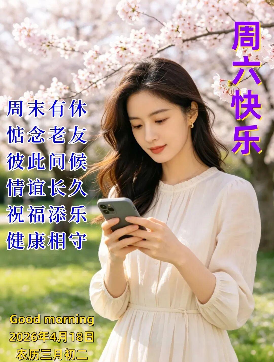 生活中,愿你天天快乐。春末换季中,愿你平安无恙。问候中,盼你如意吉祥。祈福中,祝你永远健康。周六安康!