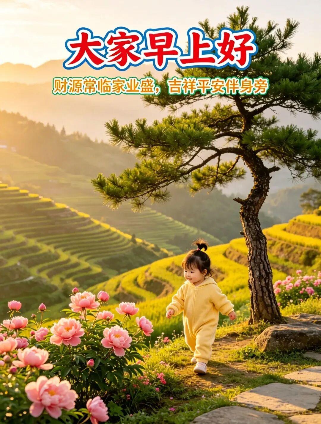 美好一天又启航,春晨问候送吉祥;天天相聚头条中,相互祝福暖心田;千言万语