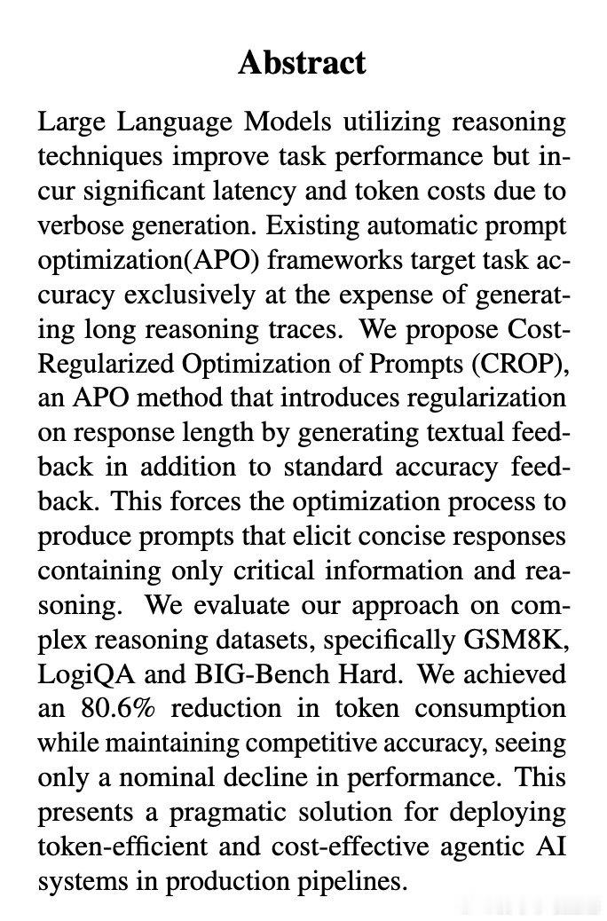 [CL]《CROP: Token-Efficient Reasoning in Large Language Models via Regularized Prompt Optimization》D Shah, S Badhe, N Kathrotia, P Tiwari [Google LLC & Purdue University] (2026)