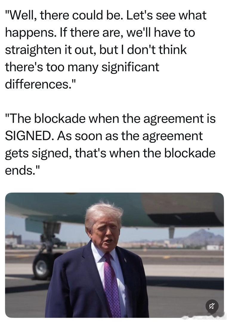 Trump:谈得差不多了,没什么重大分歧…一旦签了协议,对伊朗的封锁就会结束