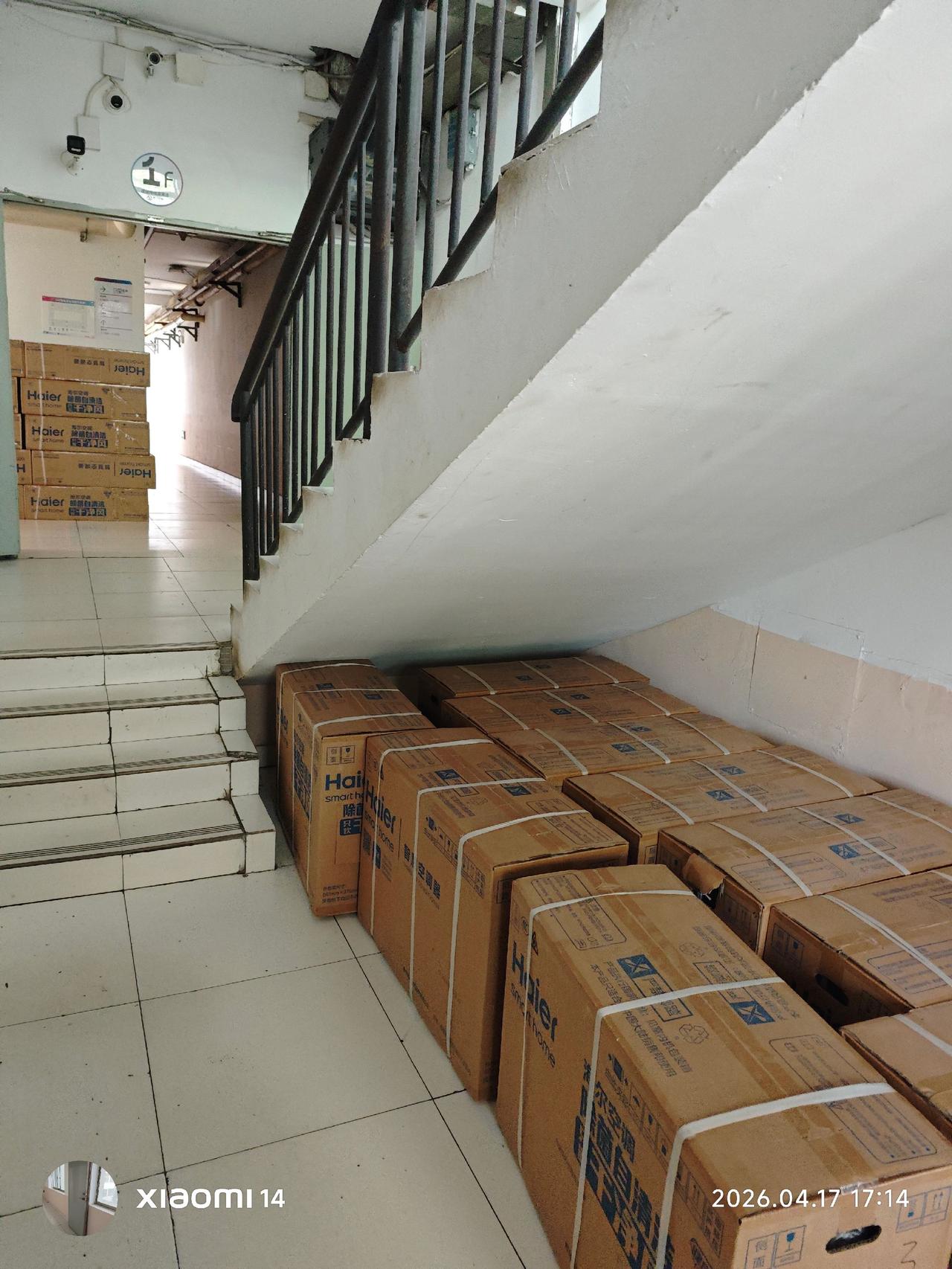我们住的宿舍都有空调,不知道这次空调是给哪一部分在装修,反正宿舍楼下堆了很多。