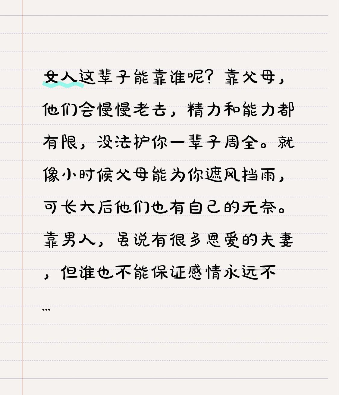女人这辈子能靠谁呢?靠父母,他们会慢慢老去,精力和能力都有限,没法护你一辈子周全。就像小时候父母能为你遮风挡雨,可长大后他们也有自己的无奈。靠男人,虽说有很多恩爱的夫妻,但谁也不能保证感情永远不变。前阵子新闻里那个全职太太,老公事业有成后却变了心,她一下子没了依靠。其实啊,女人最该靠的还是自己。有独立的经济,遇到困难能自己扛;有强大的内心,能消化生活的苦。努力提升自己,才是最稳的依靠。