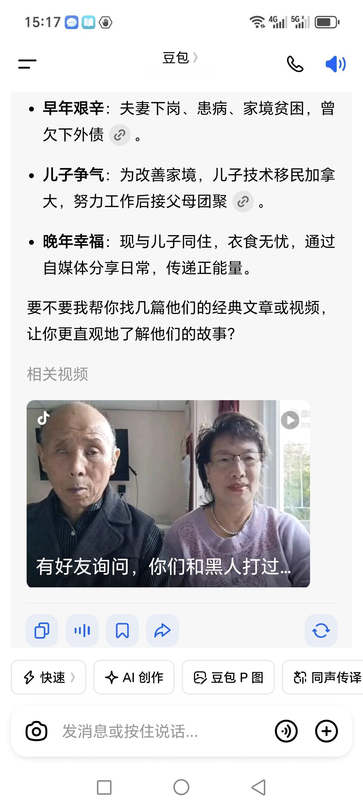 我以为“豆包”会说:信息量太大,关于“三宝在多伦多”老两口是什么样的人,我们暂时没法掌握他们的信息!