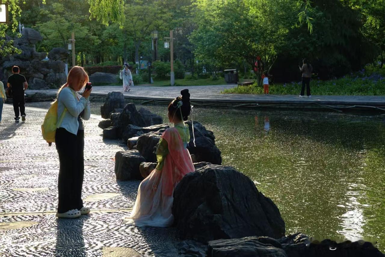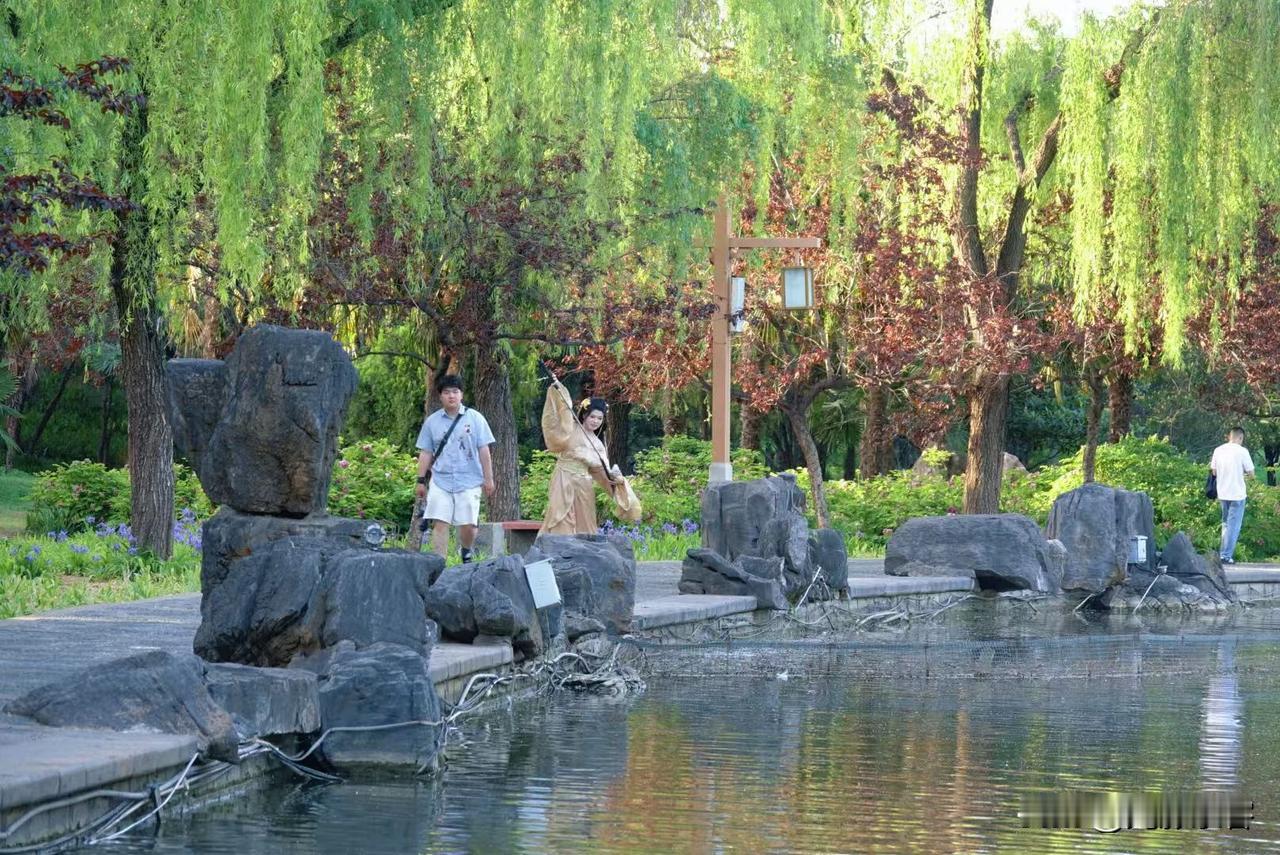 在洛阳欣赏牡丹,你可以遇到大量穿唐朝服装的美女群。如果迷迷糊糊一下,似乎是穿越到了大唐。也许现在生活好了,比较胖的美女比较多,这也符合唐朝时期的审美观,毕竟杨玉环杨贵妃就是微胖美女。在美丽的牡丹旁边,有几个美女相伴拍出来照片也有了活力。晒出你镜头里的花