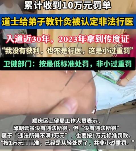 事情传开后,不少人得知了老道爷的遭遇,有人觉得他冤枉,认为只是内部教学,不该被如此重罚;也有人觉得,法律面前人人平等,针灸属于医疗行为,无证教学确实违规,罚款是合理的,双方各执一词,争论不休。