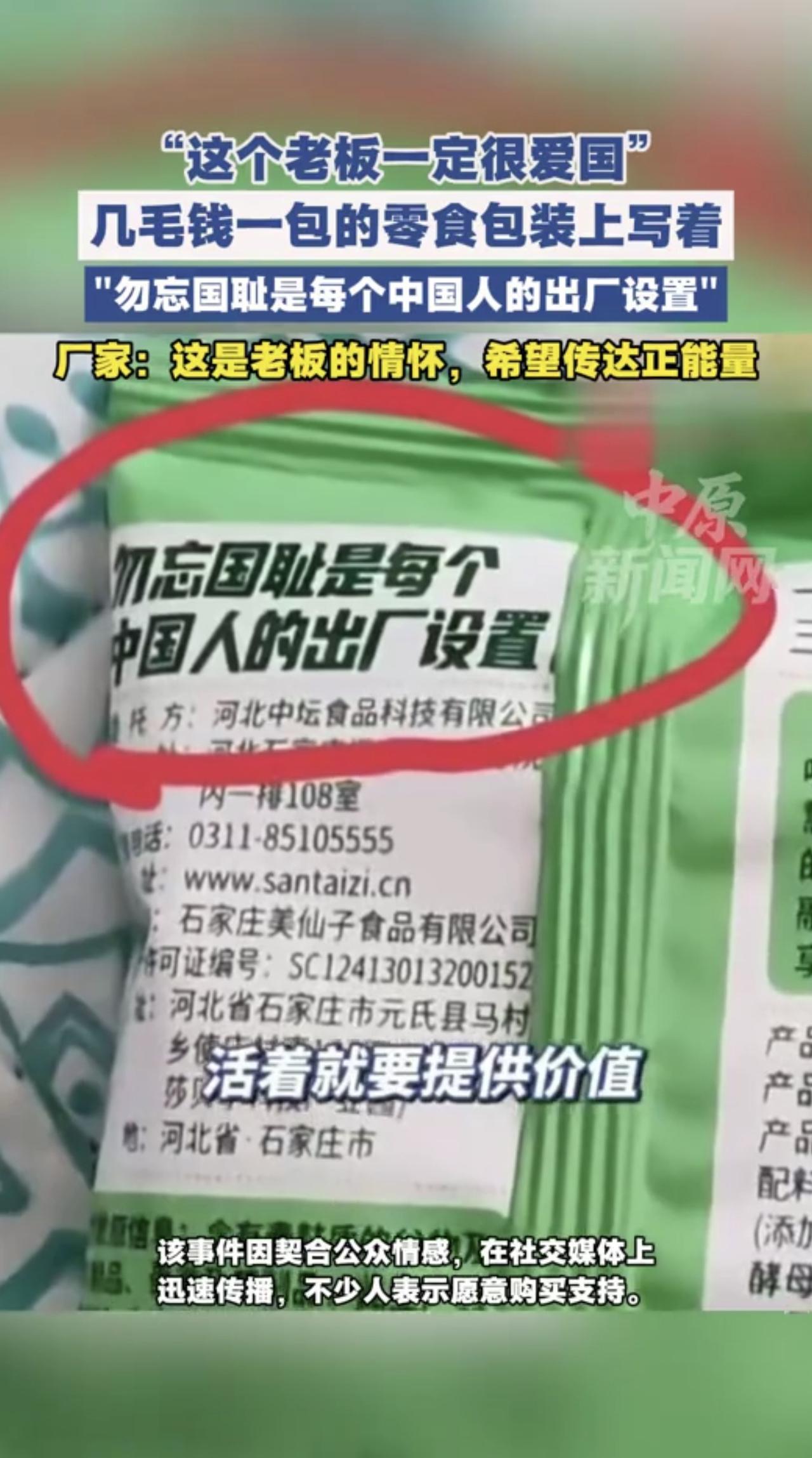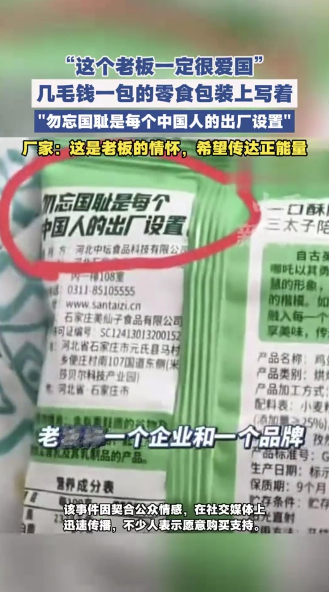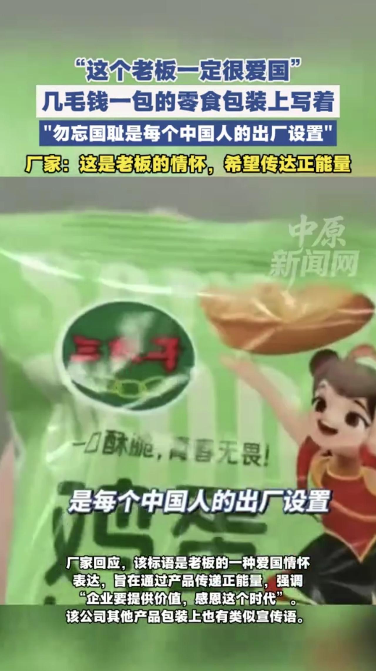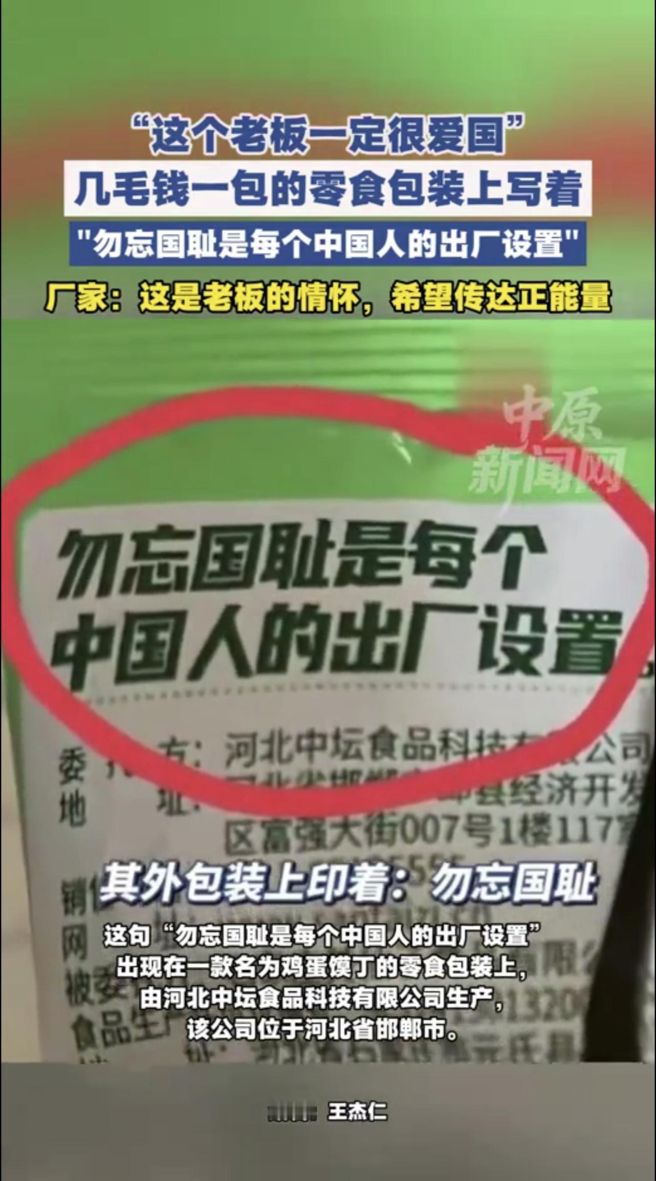 零食包装上写着“勿忘国耻是每个中国人的出厂设置” 几毛钱一包的零食包装上写着勿忘