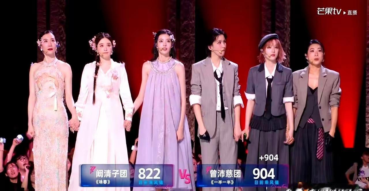 然后她们的唱跳舞台《一半一半》获得了904的高分。