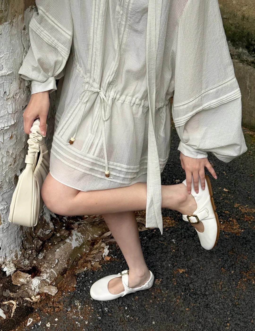 White Out. 🤍 春夏不费力出门, 一身白,一双羊皮玛丽珍, 舒适自在