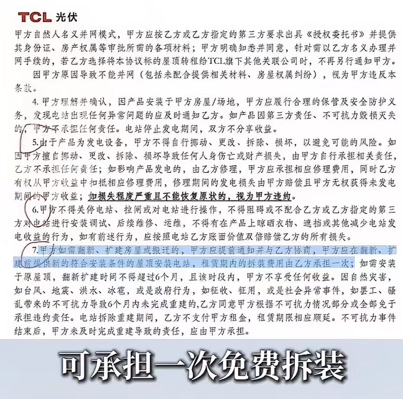 越看越心惊——协议里全是约束农户的条款,不能拉闸、不能碰设备,可对于公司不履行拆装义务、不处理售后,却只字未提。