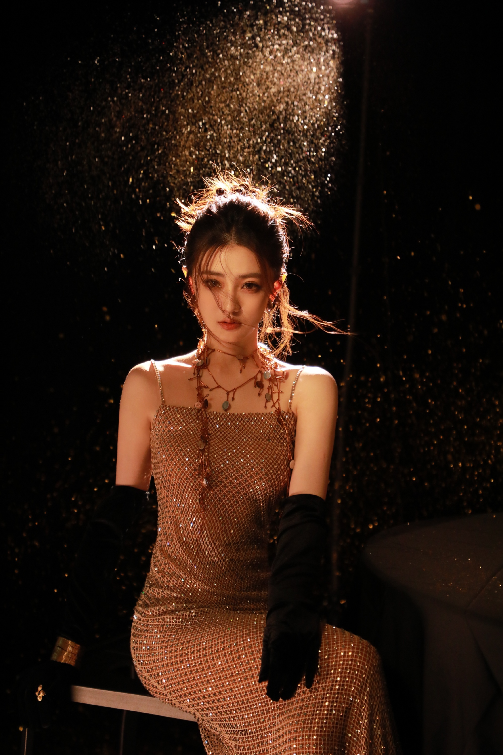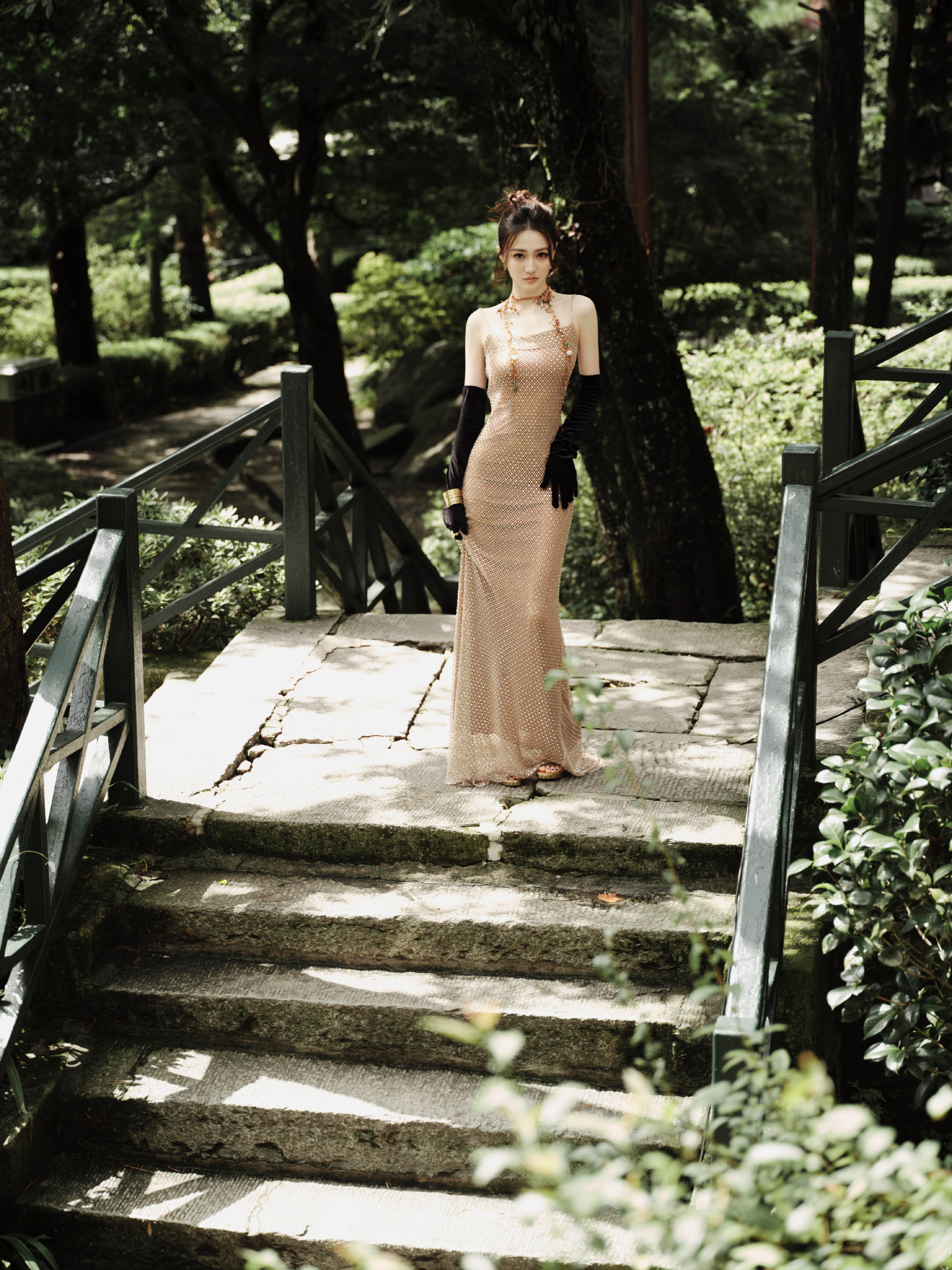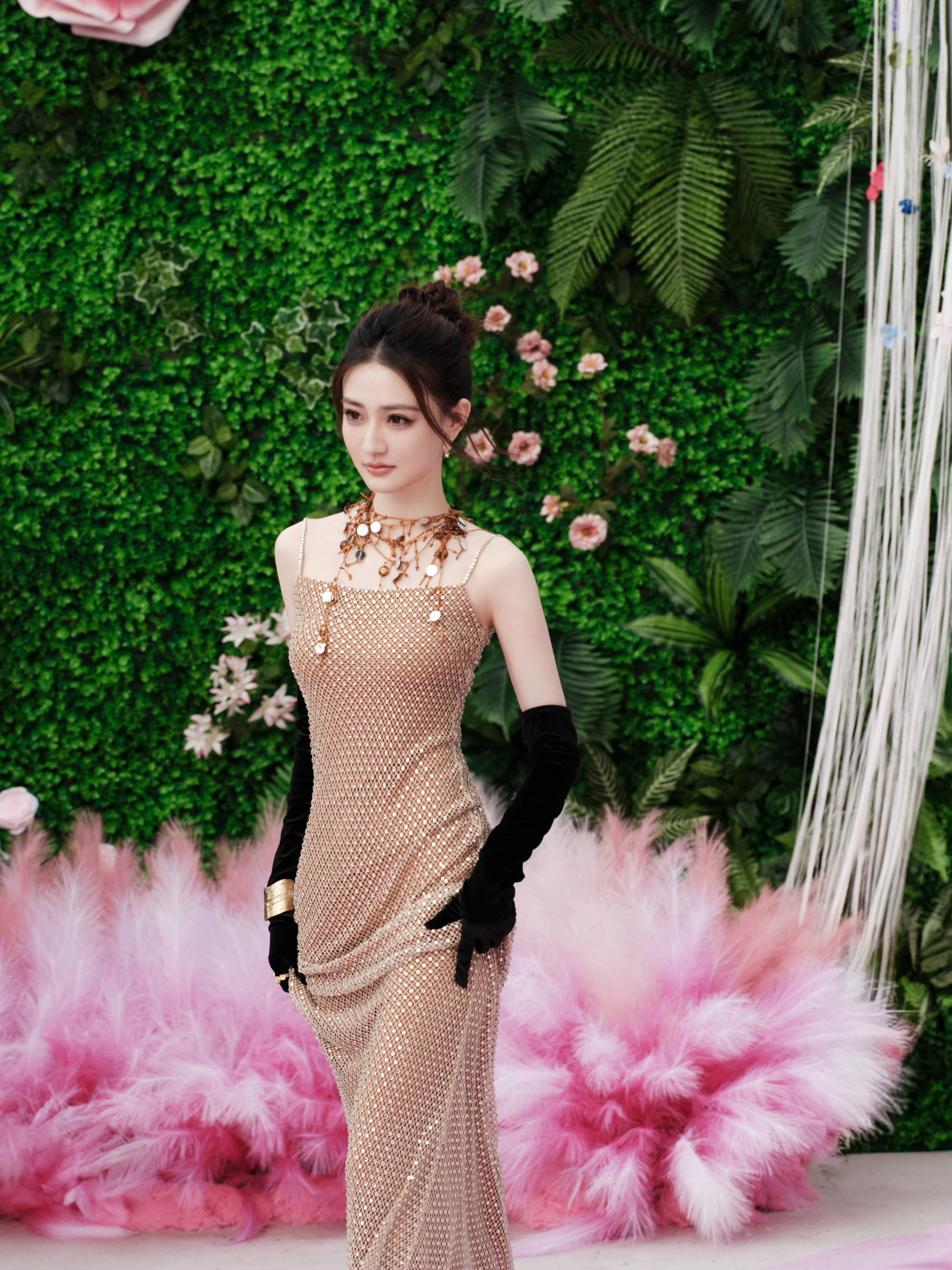 张俪杀疯了!金色镂空长裙,身材比例封神!这谁看了不迷糊啊!🔥张俪明
