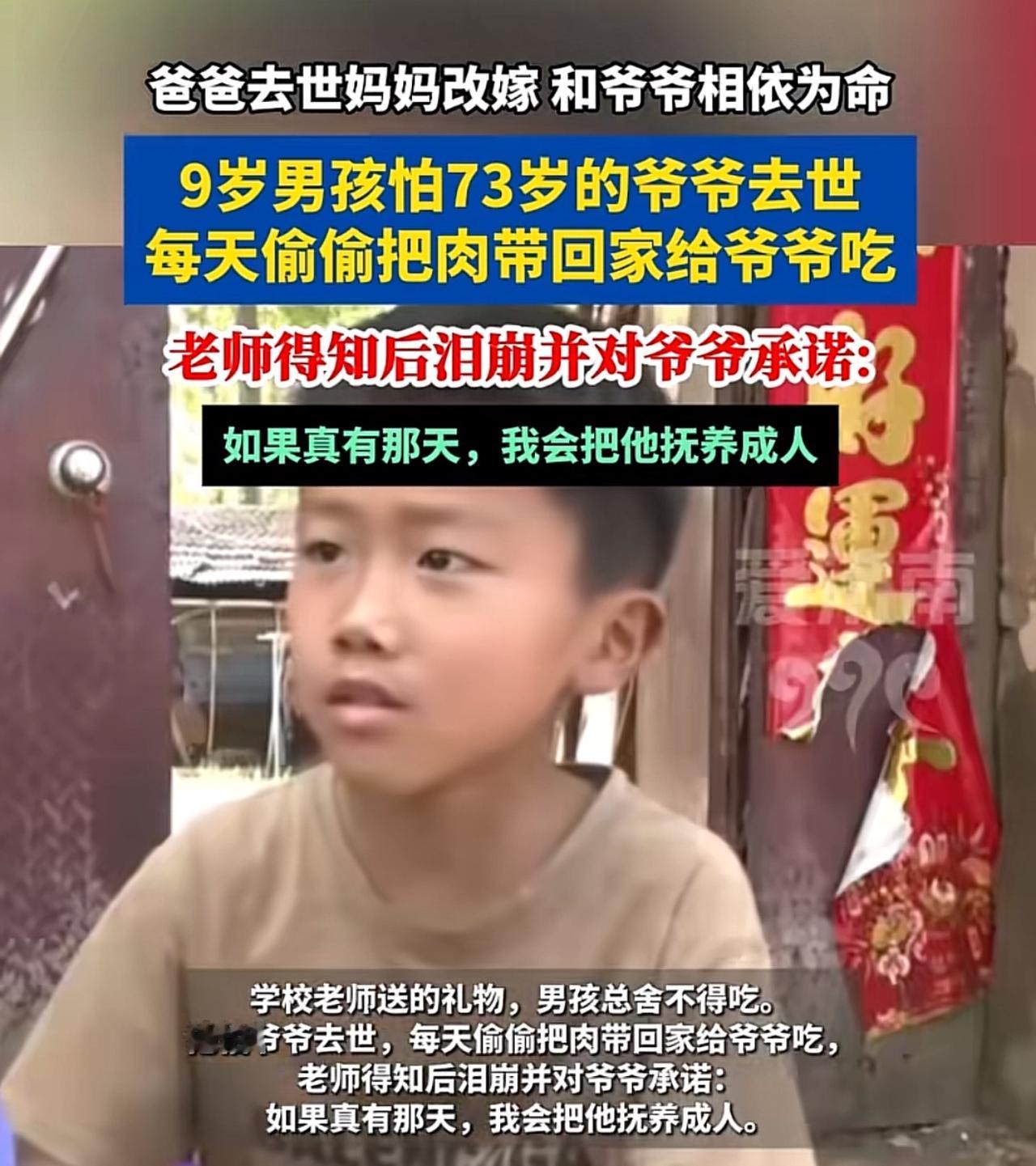 当老师问他为什么不吃肉时,他红着眼眶说:“我怕爷爷也走了,他从来没吃过这么好的肉。”