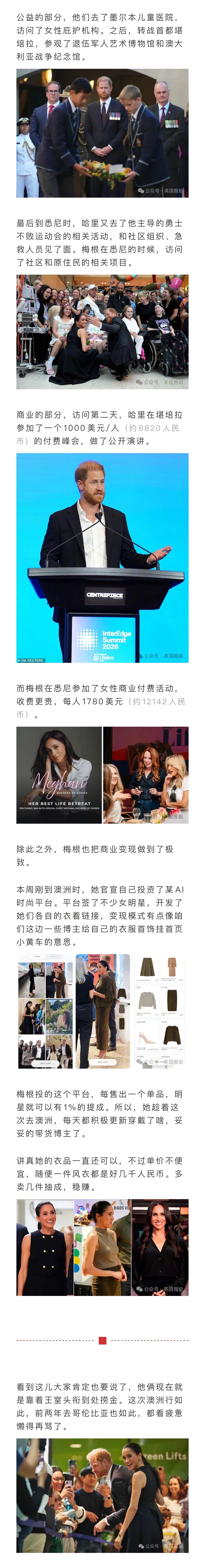 哈里梅根这周去了澳洲,做了不少收费商演活动,被嘲“伪王室巡演”…