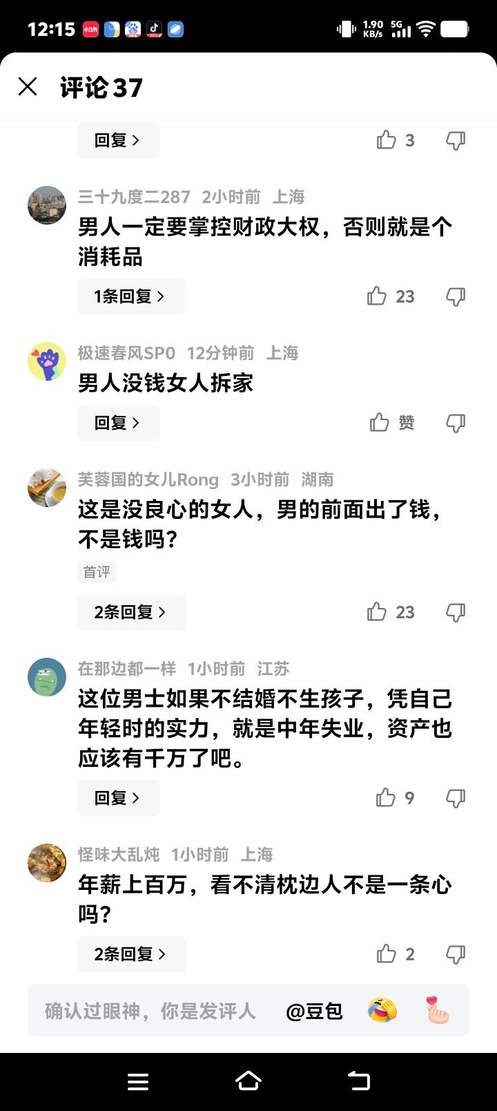 网友的愤怒并非毫无缘由。评论区里,“工资卡不能上交”、“男人要有自己的底牌”、“这是工具人的下场”等声音汹涌澎湃。它折射出一种普遍焦虑:在传统“男人养家”观念与现代经济波动叠加下,个体的抗风险能力变得异常脆弱。当你的价值被仅仅绑定在收入数字上时,关系的稳固便薄如蝉翼。