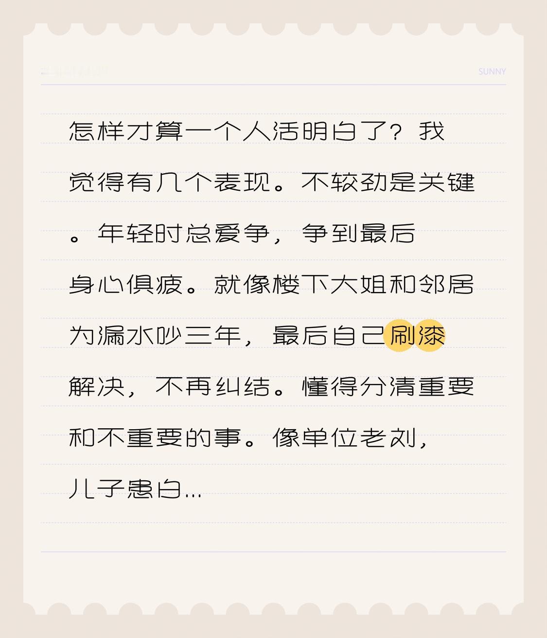不较劲是关键。年轻时总爱争,争到最后身心俱疲。就像楼下大姐和邻居为漏水吵三年,最后自己刷漆解决,不再纠结。