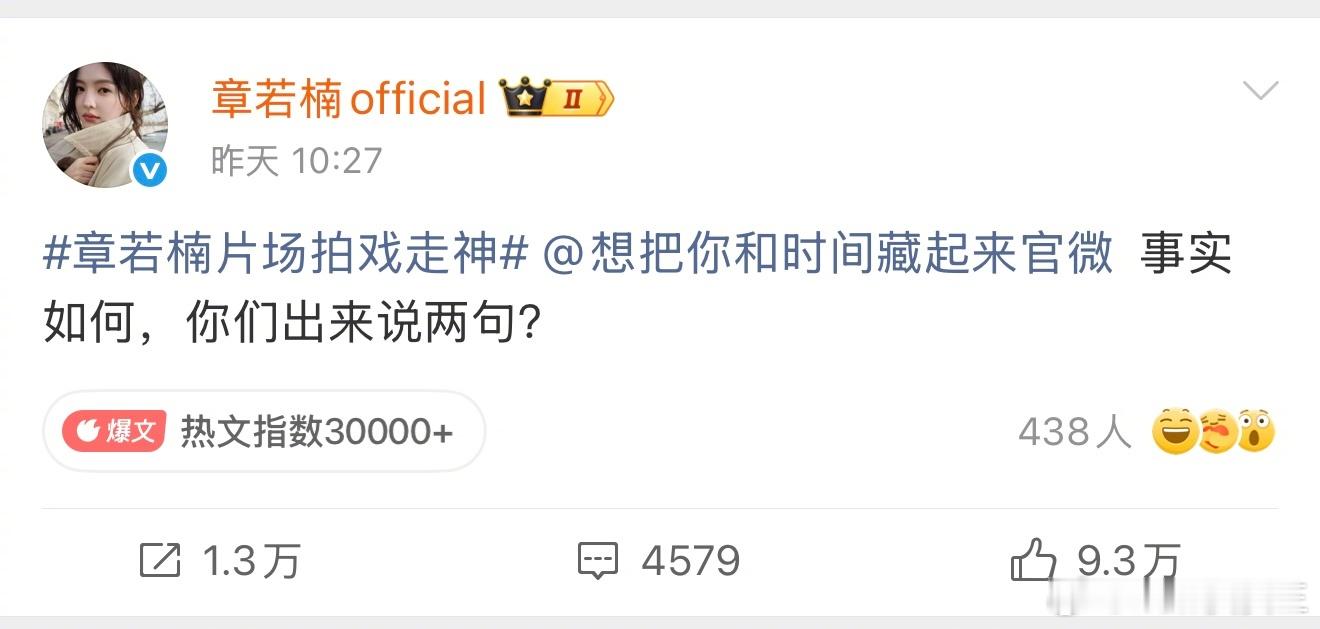昨天,章若楠工作室率先让剧组出来说两句,因为被指疑似片场拍戏走神。