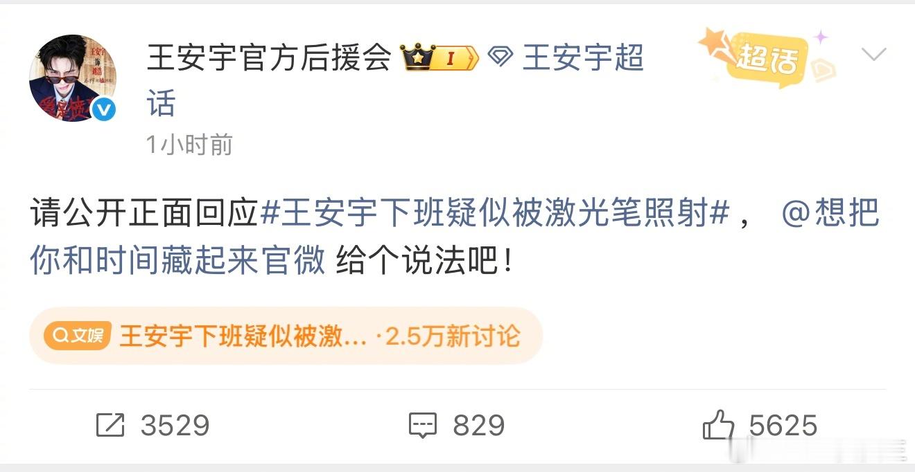 王安宇方也要求剧组给说法了,因为疑似被激光笔照射。