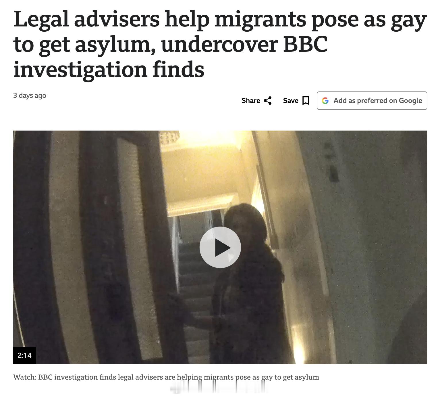 BBC卧底调查揭露,英国出现一条帮助移民伪造“同性恋身份”申请庇护的灰色产业链。