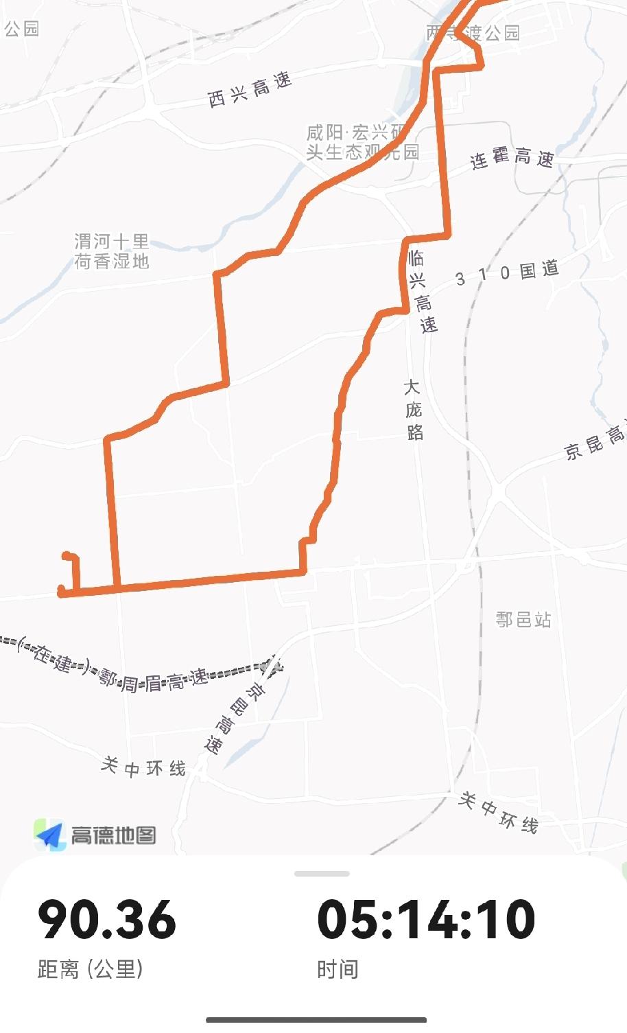 重阳宫位于终南山下的鄠邑区祖庵镇,距离刚好40公里,回来时到鄠邑钟楼西北角吃了一碗户县软面,骑到家全程还不足90公里,又在小区里骑了一圈,凑了个整数,感觉刚刚好!