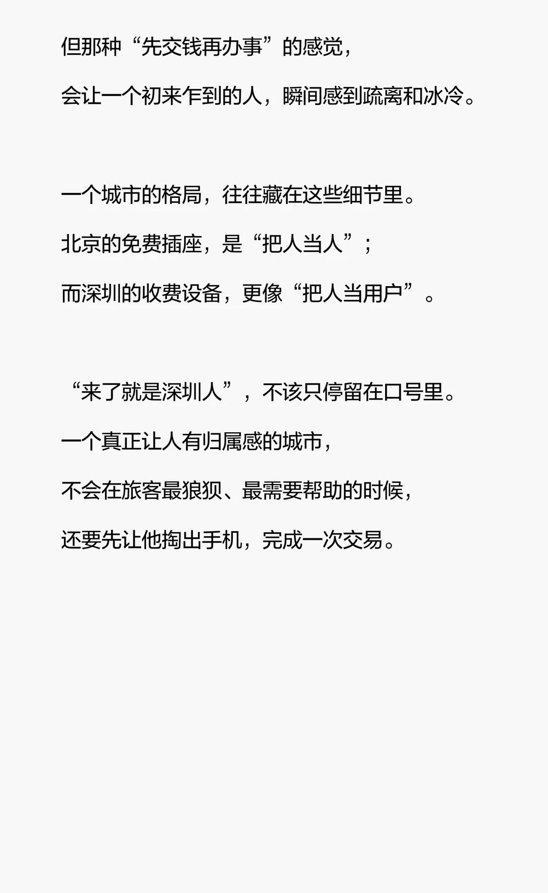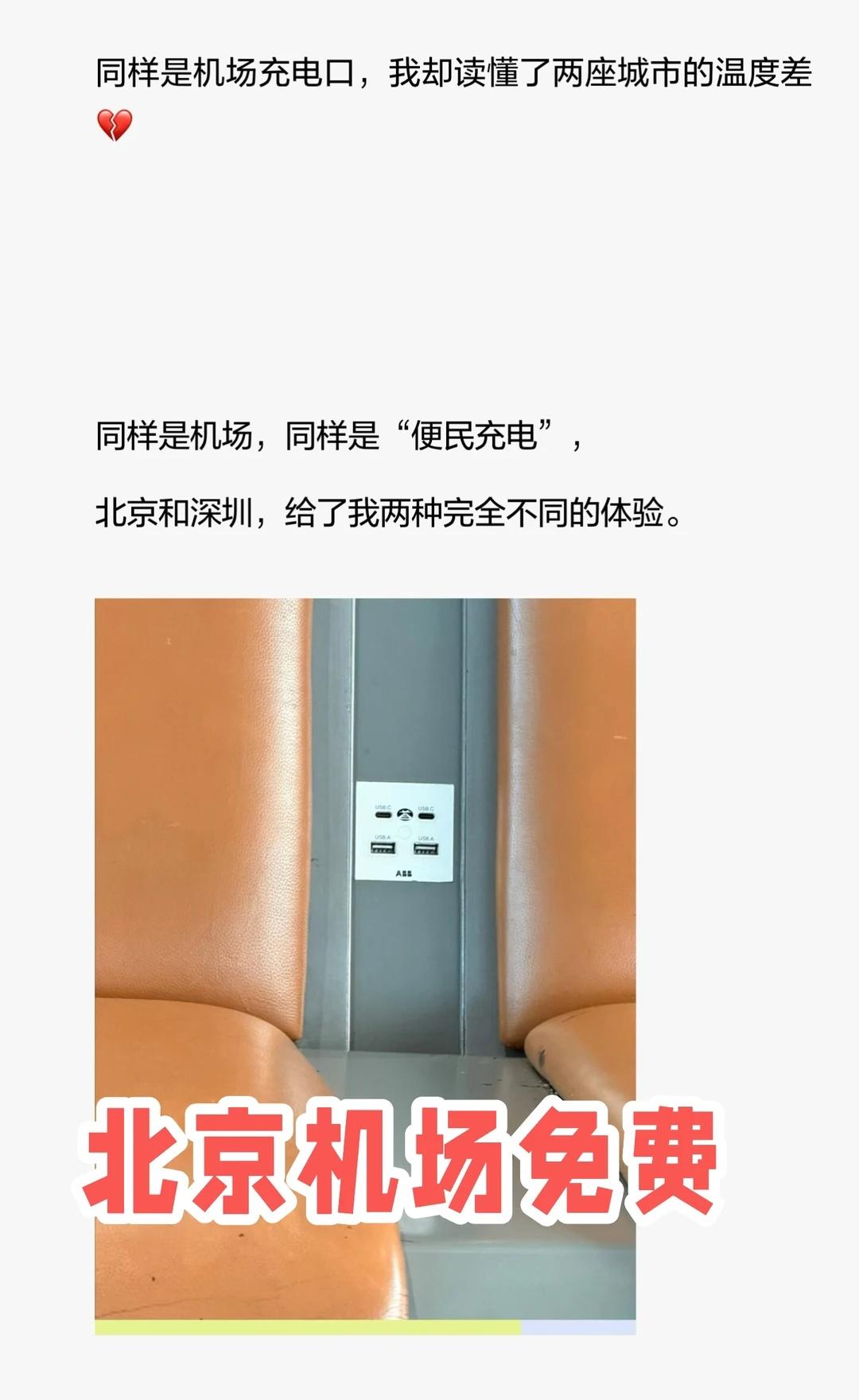 北京机场免费USB充电口,贴心便捷;深圳机场扫码付费,商业逻辑清晰但体验冷冰。北京传递温暖,深圳却让人感到疏离。一个城市的服务细节,体现其格局与温度。城市温度 机场细节 来了就是深圳人 便民服务