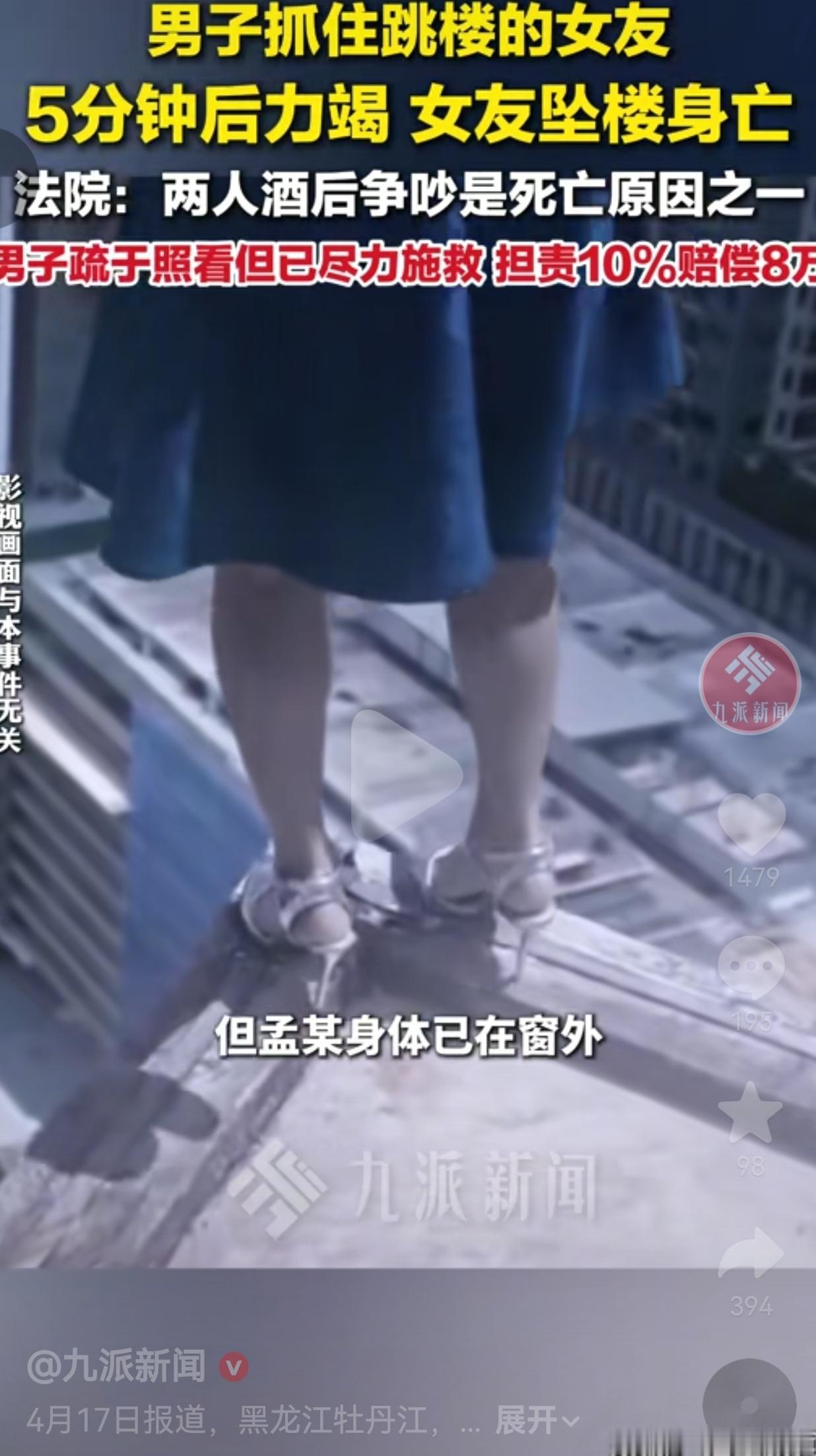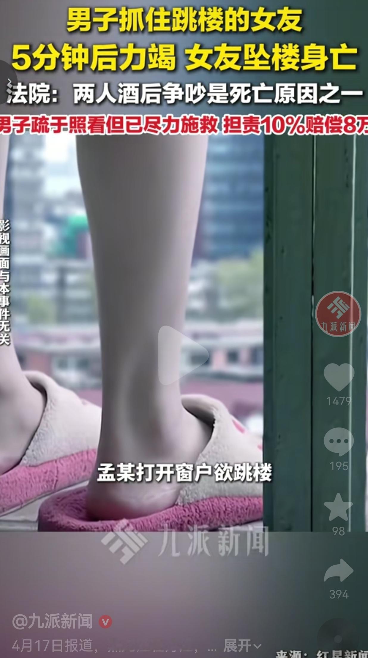 一个男人拼尽全力,抓着想跳楼的女友坚持了5分钟,最后力竭失手,女友坠楼身亡,他还得赔8万!我就想问一句,这事儿真的让人心里太不是滋味了。