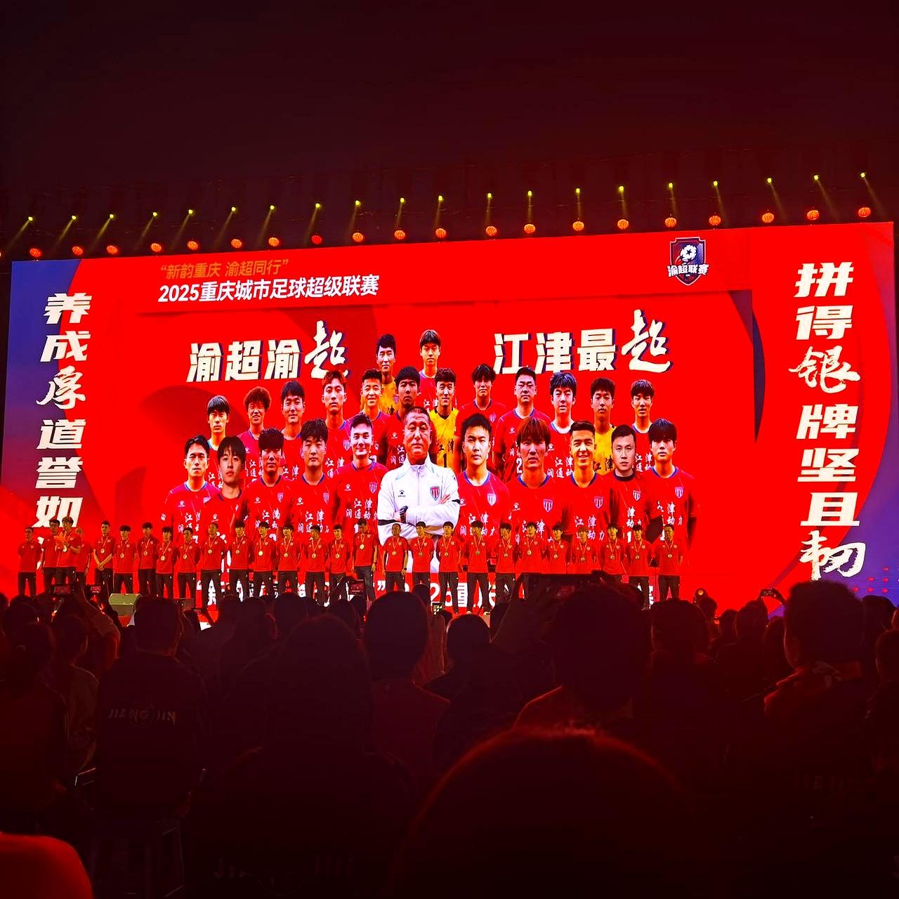 这可是2025渝超亚军代表团江津润通动力队的主场,他们刚在奥体中心决赛拼搏完,现场人气直接爆棚。我瞅准机会,和最喜欢的解说老宋合了影,这波不亏。