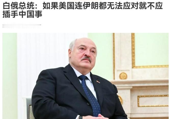 白俄罗斯总统卢卡申科表示,美国的主要“敌人”是中国。如果美国人连伊朗都无法应对,那就不要去插手中国事务!