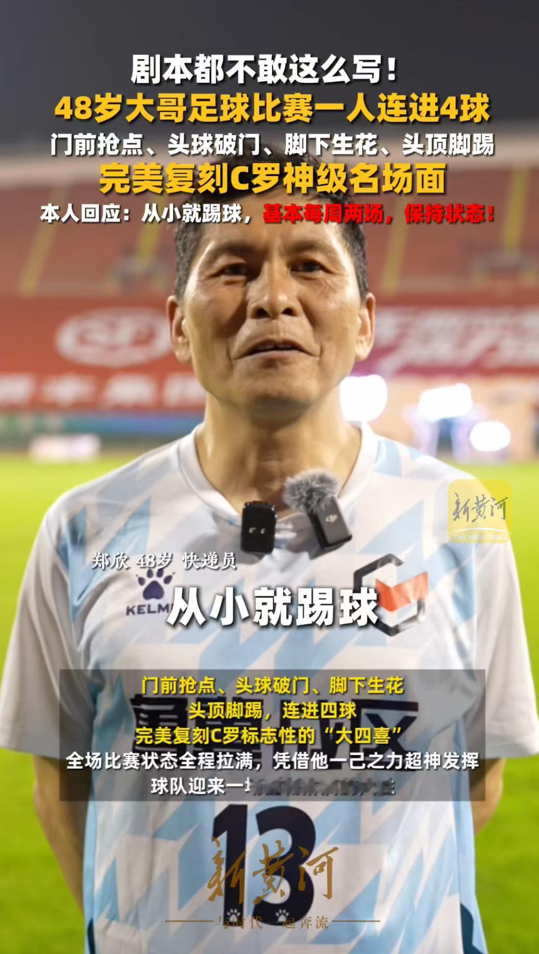 48岁大哥球场复刻C罗大四喜太惊艳了!中年大哥绿茵场上复刻C罗经典大四喜,射门节