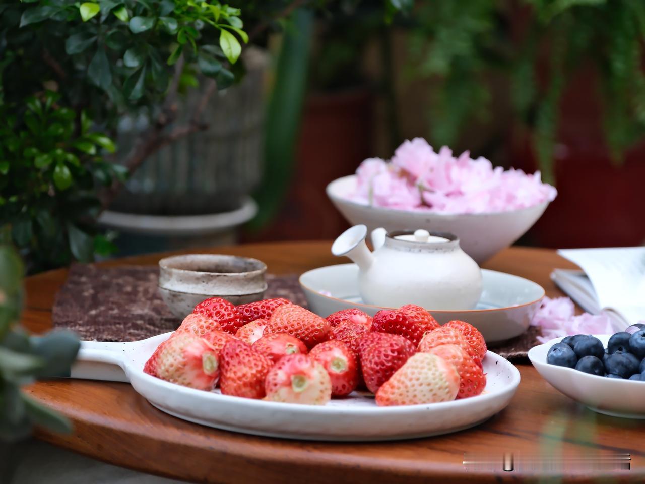 上午在露台坐着喝茶,