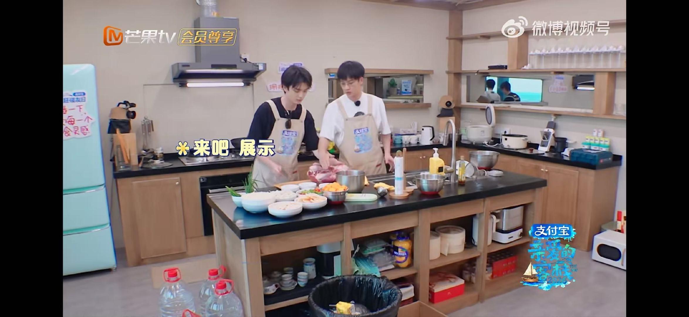 吴泽林张宸逍大战冻牛肉 亲爱的客栈嘿,瞧《亲爱的客栈》后厨这热闹劲儿!吴泽林拿出那块硬邦邦的未解冻牛肉,拉着张宸逍就准备大干一场,要用“斩骨刀”切下一块。两人轮番挥舞着刀,累得气喘吁吁,可牛肉就像个顽固的“小怪兽”,只受了点皮外伤,这场大战冻牛肉,他俩只能“含泪退场”咯!