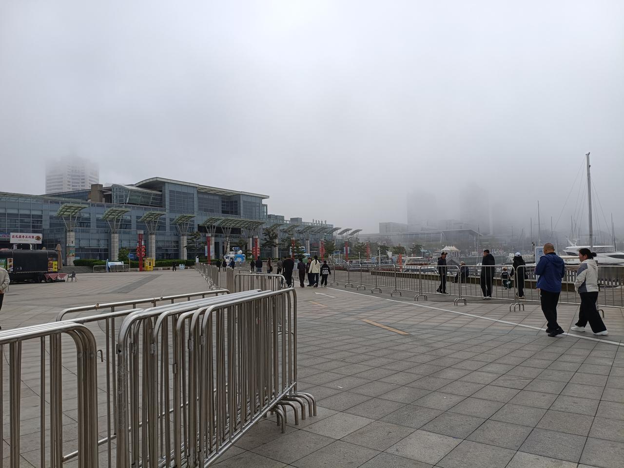 来到海边才发现今天海面上大雾四起,能见度很差,挺煞风景的。