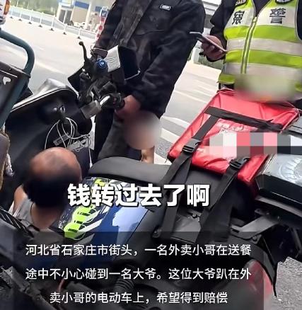 事发在石家庄一条热闹的街头,正值出行高峰,来往车辆和行人络绎不绝。一名外卖小哥骑着电动车送餐,车速不快,却突然被一名大爷拦住去路。大爷顺势倒在电动车旁,一脸痛苦地捂着腰,嘴里不停发出呻吟,声称自己被外卖小哥撞倒,腰部受了伤,要求小哥赔偿。
