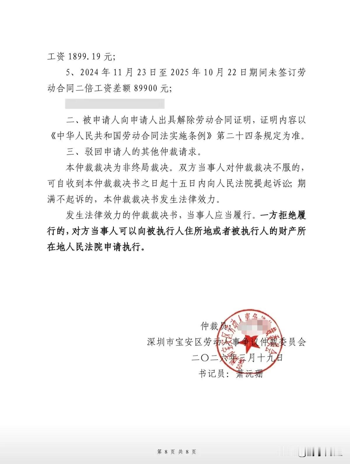 最终,员工提出的多项违法赔偿主张均得到仲裁委员会支持。