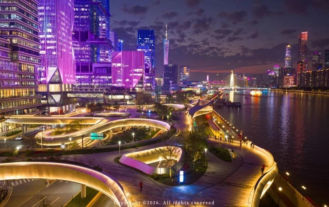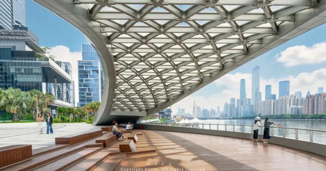 不止于此,广州城投集团在2025年全面焕新珠江岸线,滨江立体公园、黄埔涌桥、广州塔滨水大台阶先后落成投运,串联起一条连贯而富有层次的广州滨江Color Walk路线。