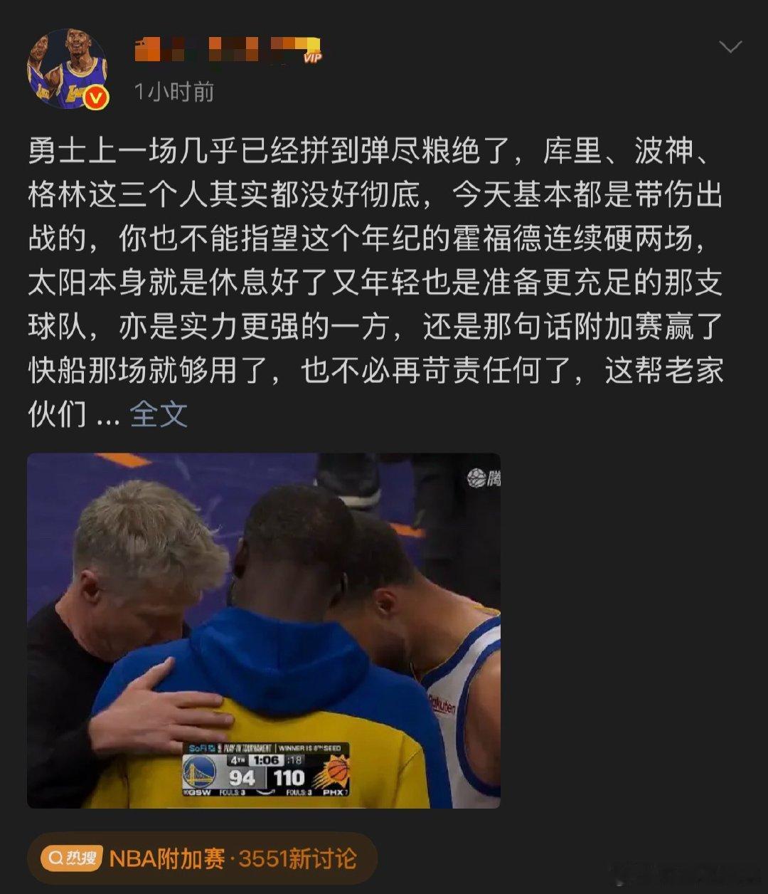 经典:赢了天神下凡,输了伤没好。太阳淘汰勇士