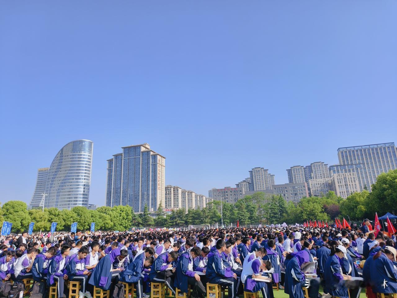 仪式尾声,各班学子整齐列队,合影留念,大家齐声高喊“高考必胜”,嘹亮的口号振奋人心,既是对成年的宣告,也是对高考的冲刺,尽显五中学子的昂扬斗志与青春锐气。