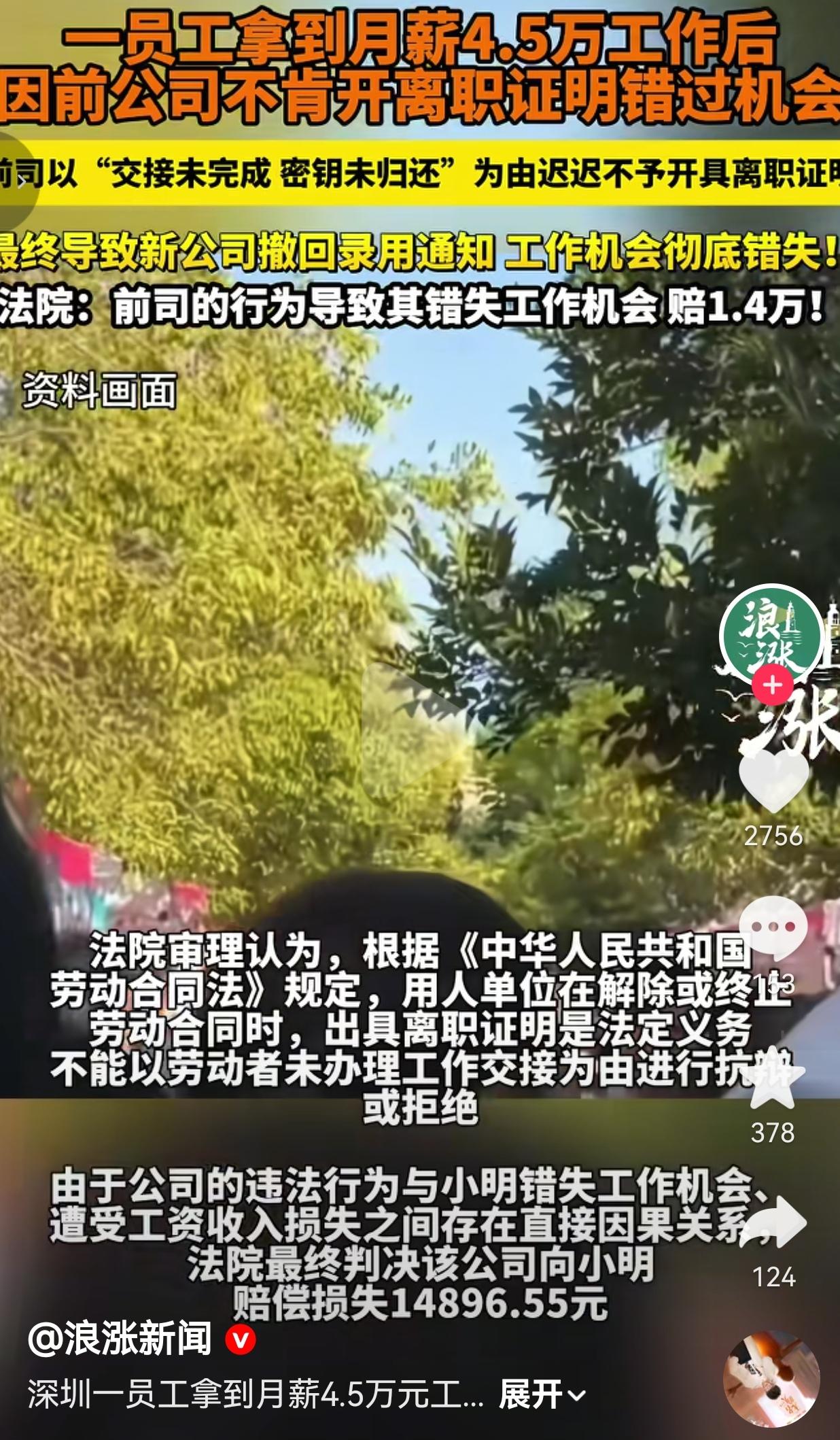 4.5万月薪工作黄了!前公司卡离职证明,最后赔1.4万太解气!
