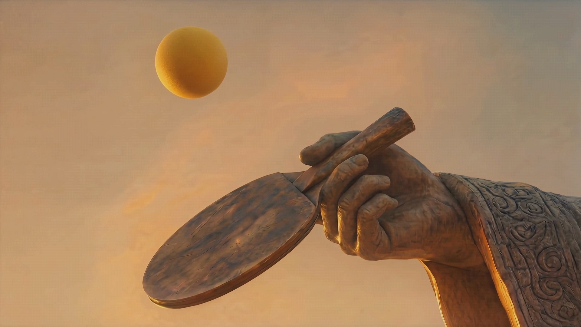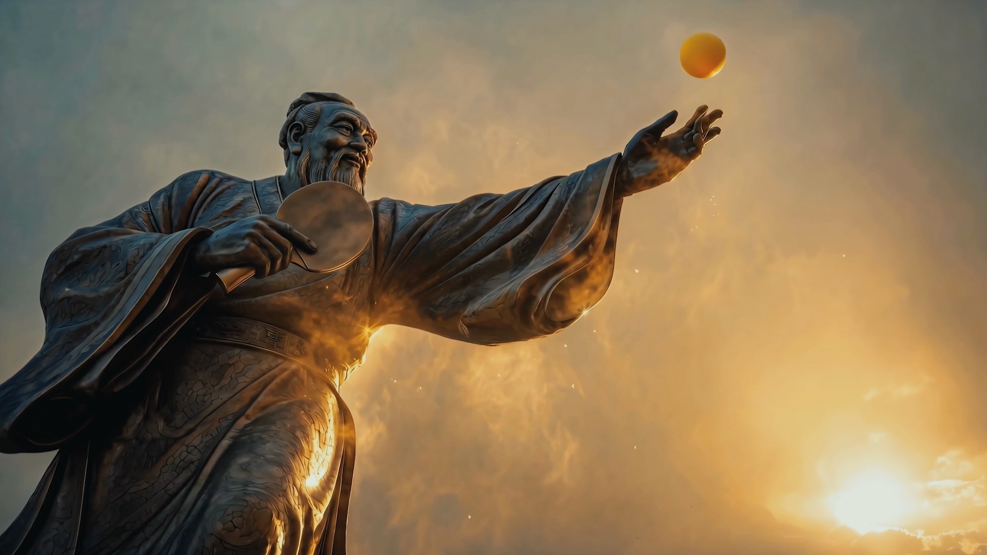 起猛了看见孔子打乒乓球了 你们山东还有不会打乒乓球的吗,连馒头都是乒乓球拍