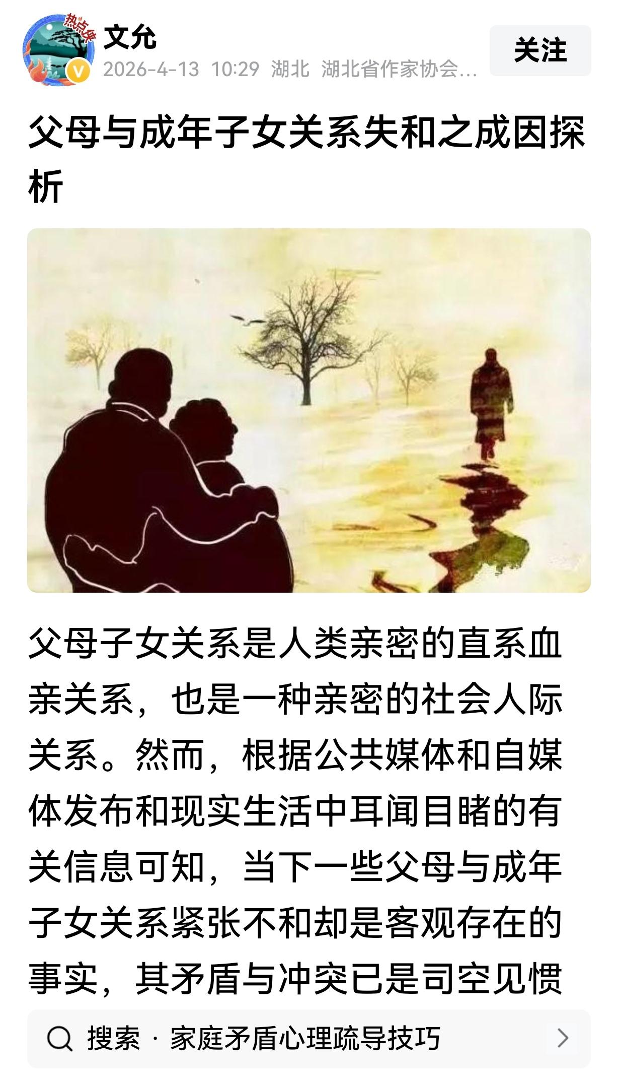 近日拙作《父母与成年子女关系失和之成因探析》受到头条好评,获得优质观点流量奖励并纳入优质观点内容扶持计划。由于文章篇幅较长,现对主要内容提示如下: