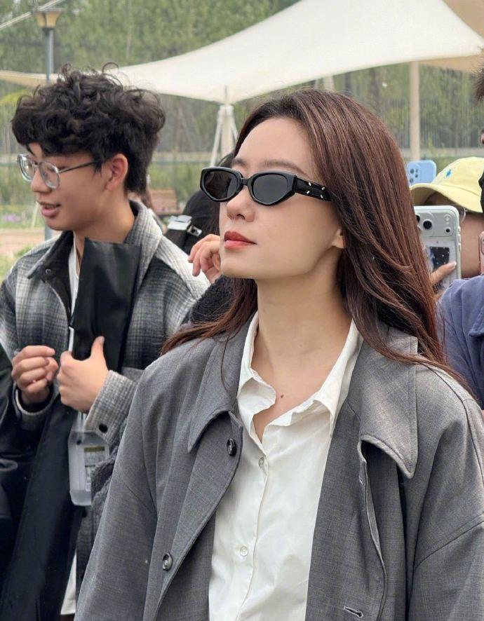 张小斐外面套装一款灰色的大衣,看起来有种风度翩翩的感觉,确实是太美了。