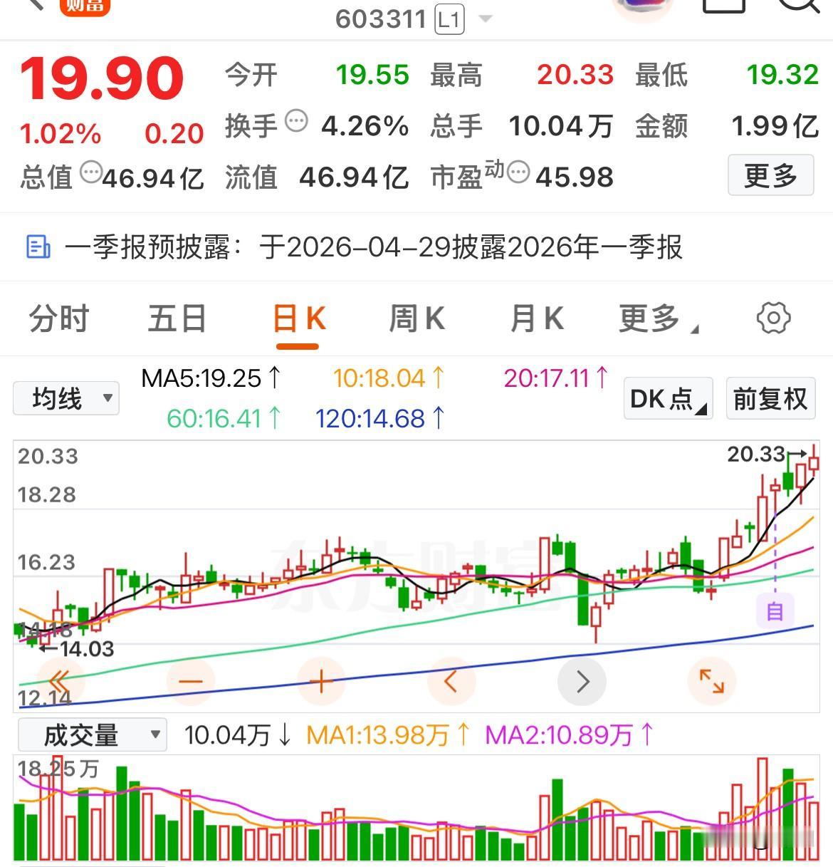 金海高科:前面文章有评述。趋势完美,沿45°角运行,似有加速趋势。当前注意回踩5日线支撑。
