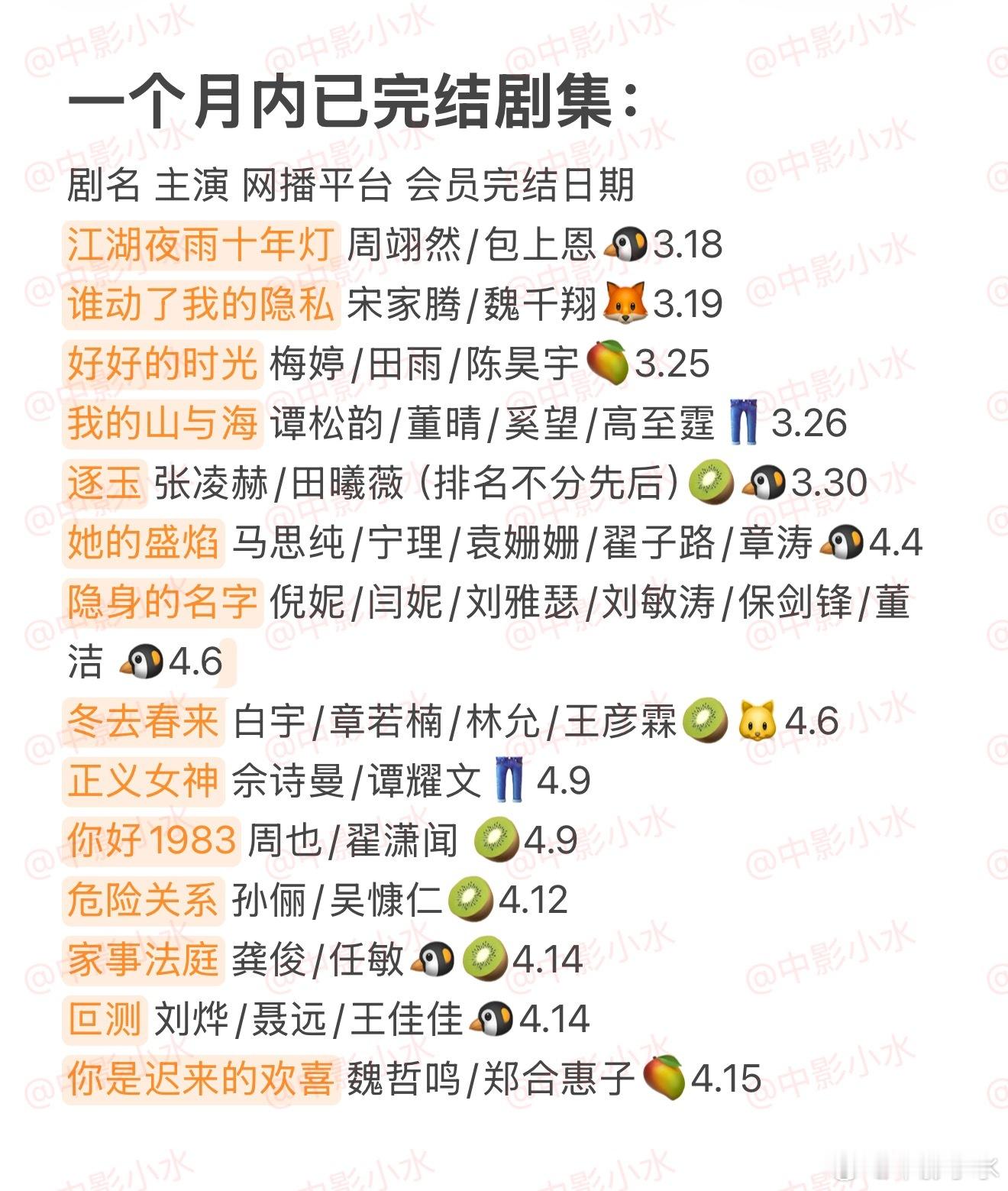拯救剧荒 4月18日,今晚看点啥??图1 追剧日历 图2 综艺日历 图3 已完结剧集 🈶八千里路云和月 王阳/万茜/黄澄澄🈶蜜语纪 钟汉良/朱珠/李梦/经超