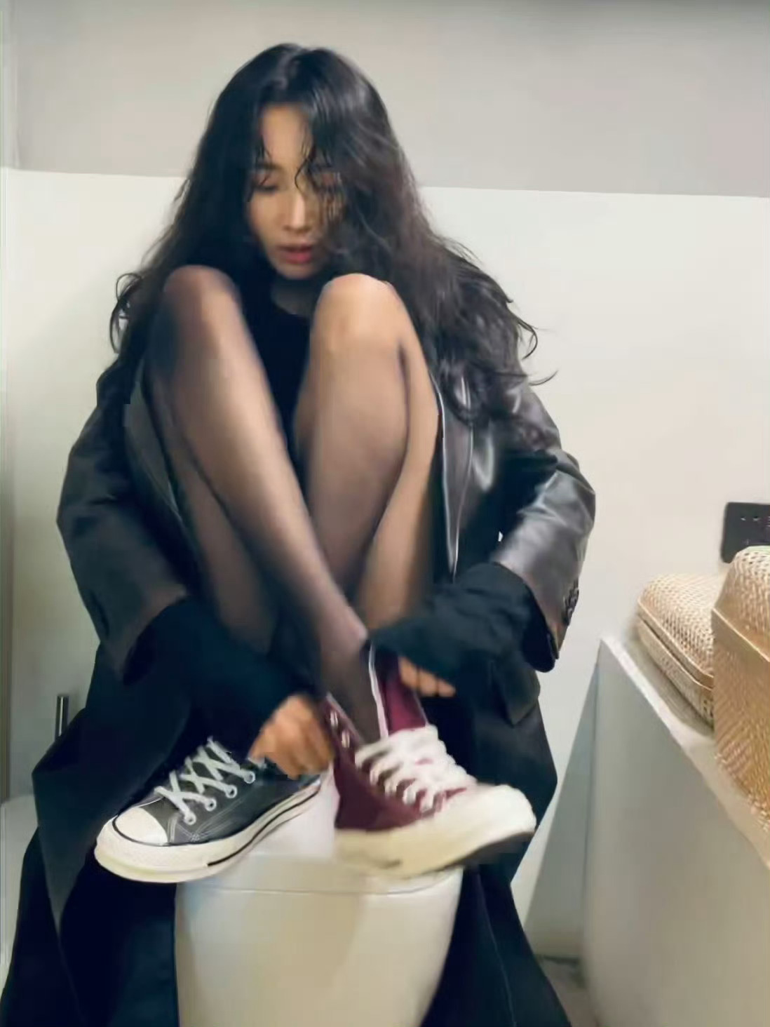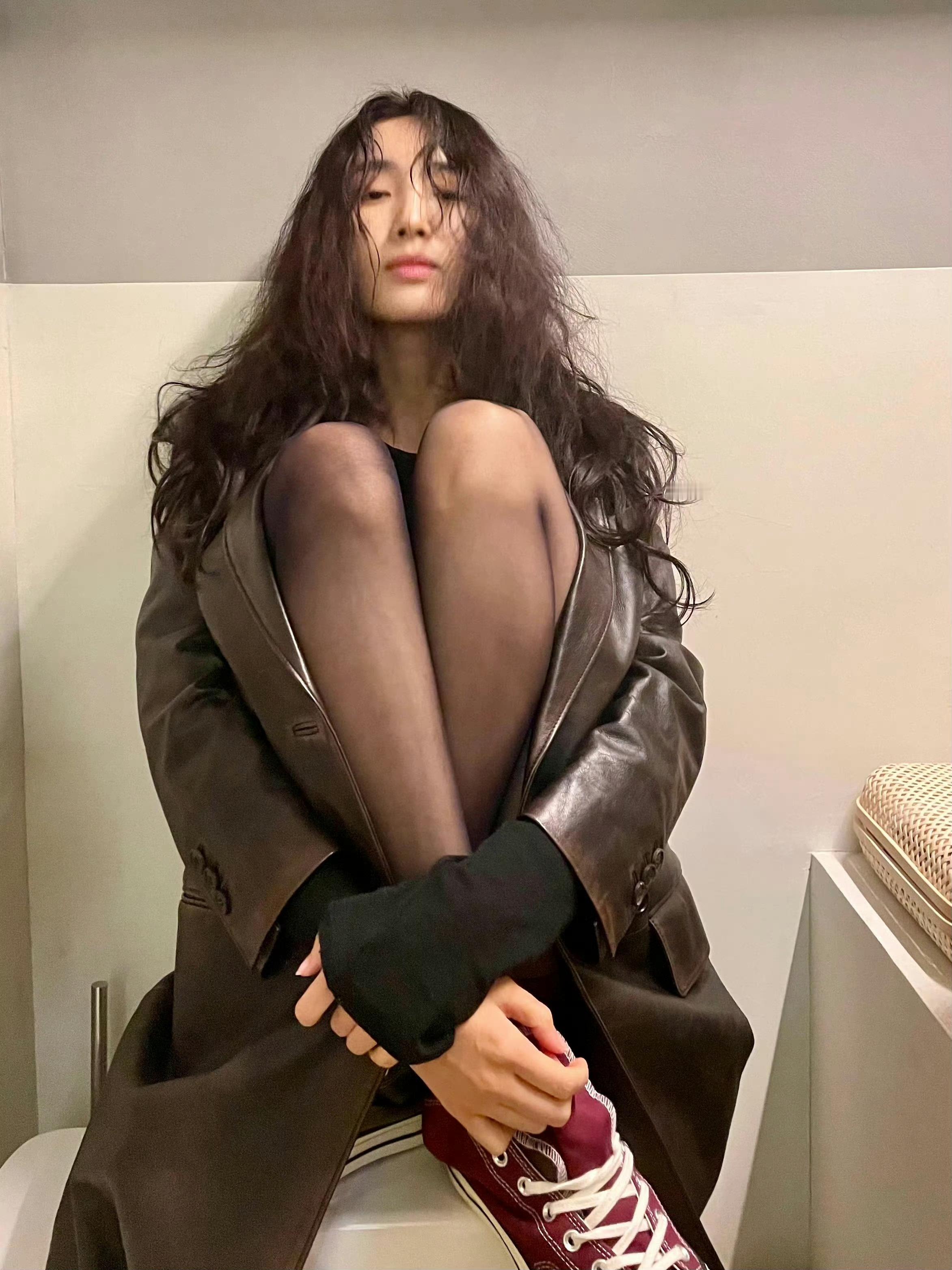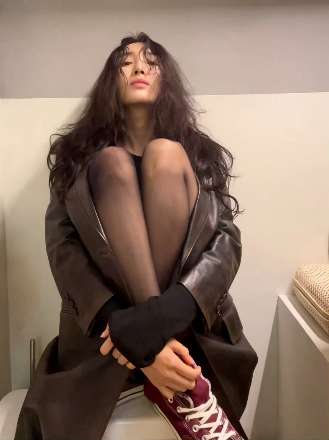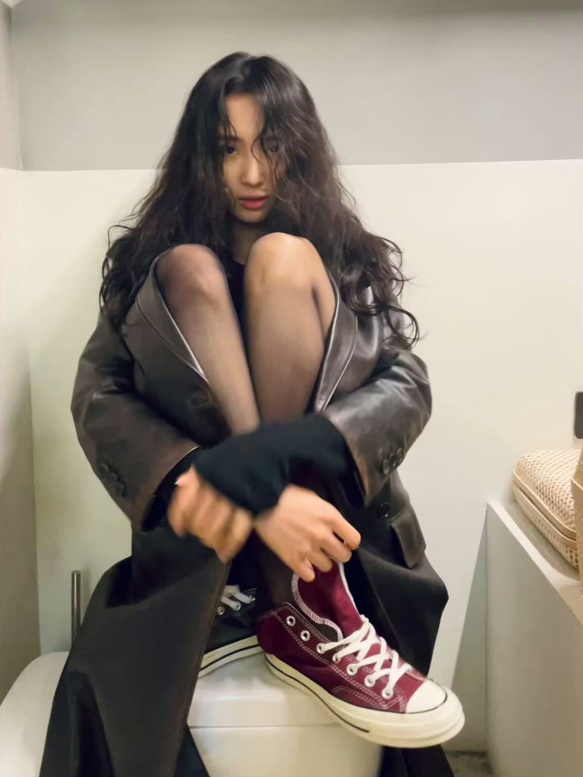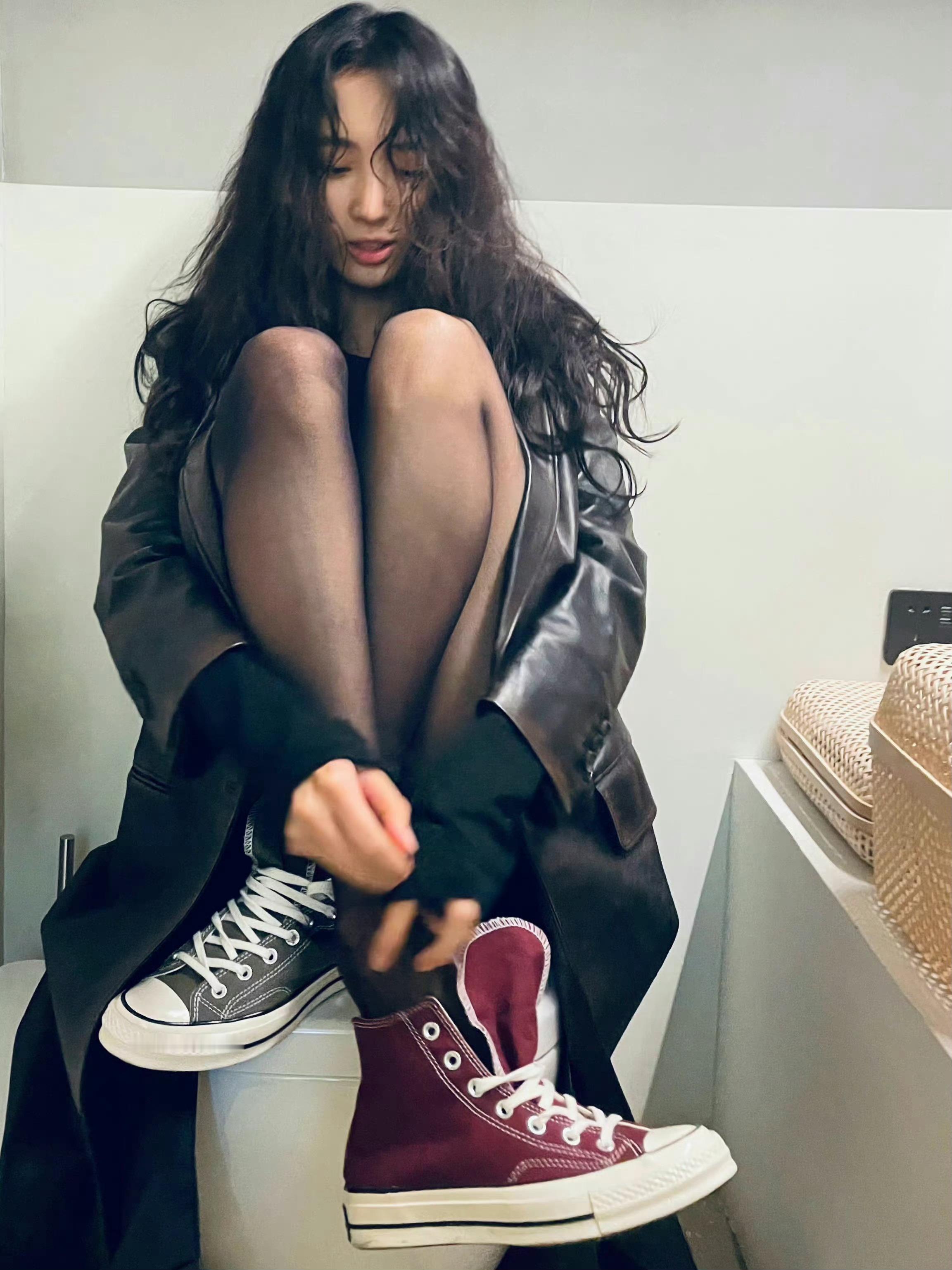 王紫璇黑丝帆布鞋穿搭,夯爆了!