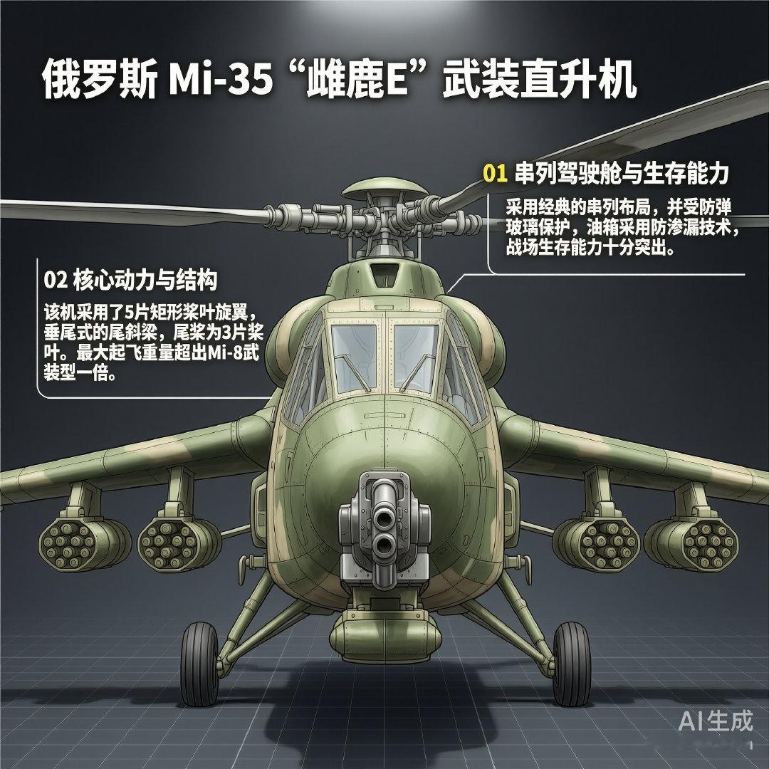 Mi-35是俄罗斯米里设计局研制的中型通用直升机,北约代号“雌鹿E”。
